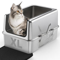 Ipow Xxl All Stainless Steel Litter Box & Mat For Large Cats - Ultra Sturdy & Odor-Free