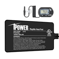 iPower 4 by 7-Inch 4W Reptile Heat Mat, LCD Digital Aquarium Thermometer, Under Tank Warmer Terrarium Heat Pad for Turtles Lizar