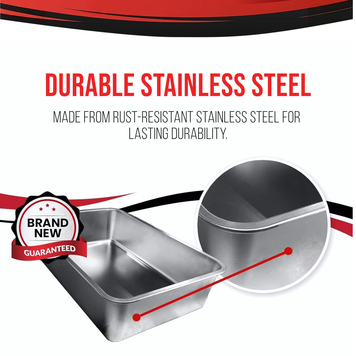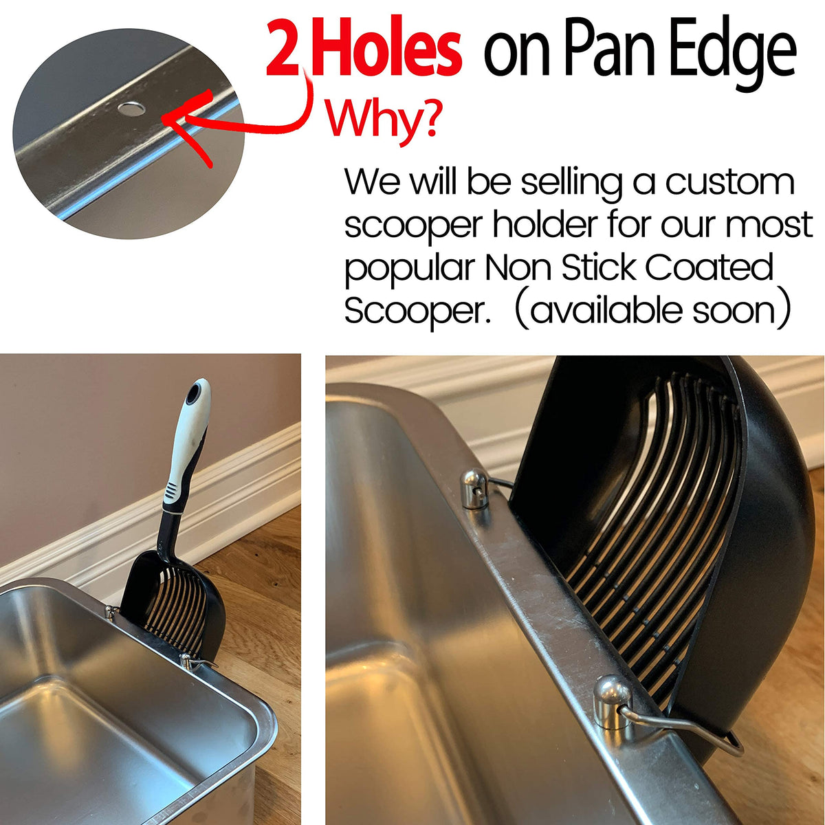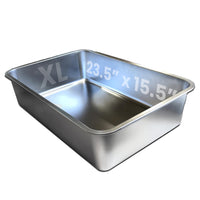 STAINLESS STEEL & ERGONOMIC STRUCTURE - Crafted from rust-resistant stainless steel, our cat XL litter box ensures unrivaled durability. With an ergonomic design featuring rounded edges and enclosed sides, nothing will get stuck in hard-to-reach corners. | STAIN- & RUST-FREE - Unlike plastic litter boxes that have unpleasant odors and stains after only a few uses, which may be harmful for your cat, our large cat litter box never collects any residue or odor and is completely rust-free. | SIZE & DESIGN - This XL cat litter box stainless pan meausres15.5'L x 5'W x 6'H. There are two holes on the pan's edge. This is for our custom scooper holder that will be released soon. | EASY TO CLEAN - We know it can be painful to clean and wash litter boxes, but this nonstick coated litter box keep litter in the pan and has no residue buildup. Designed by cat owners, these XL litter boxes for big cats are our best effort to help you in your daily chores. | MANUFACTURER'S NOTES - Some brown residue is normal on the stainless steel pan because of our bending machine that created fully rounded edges for safety. We ensure that it's new in condition and perfectly normal. The sticker shown in the pictures may not be on the box as shipped. Please throw away black corner protective pieces; it's for safe shipping only. There are two holes on the pan's edge: this is for our custom scooper holder that will be released soon.