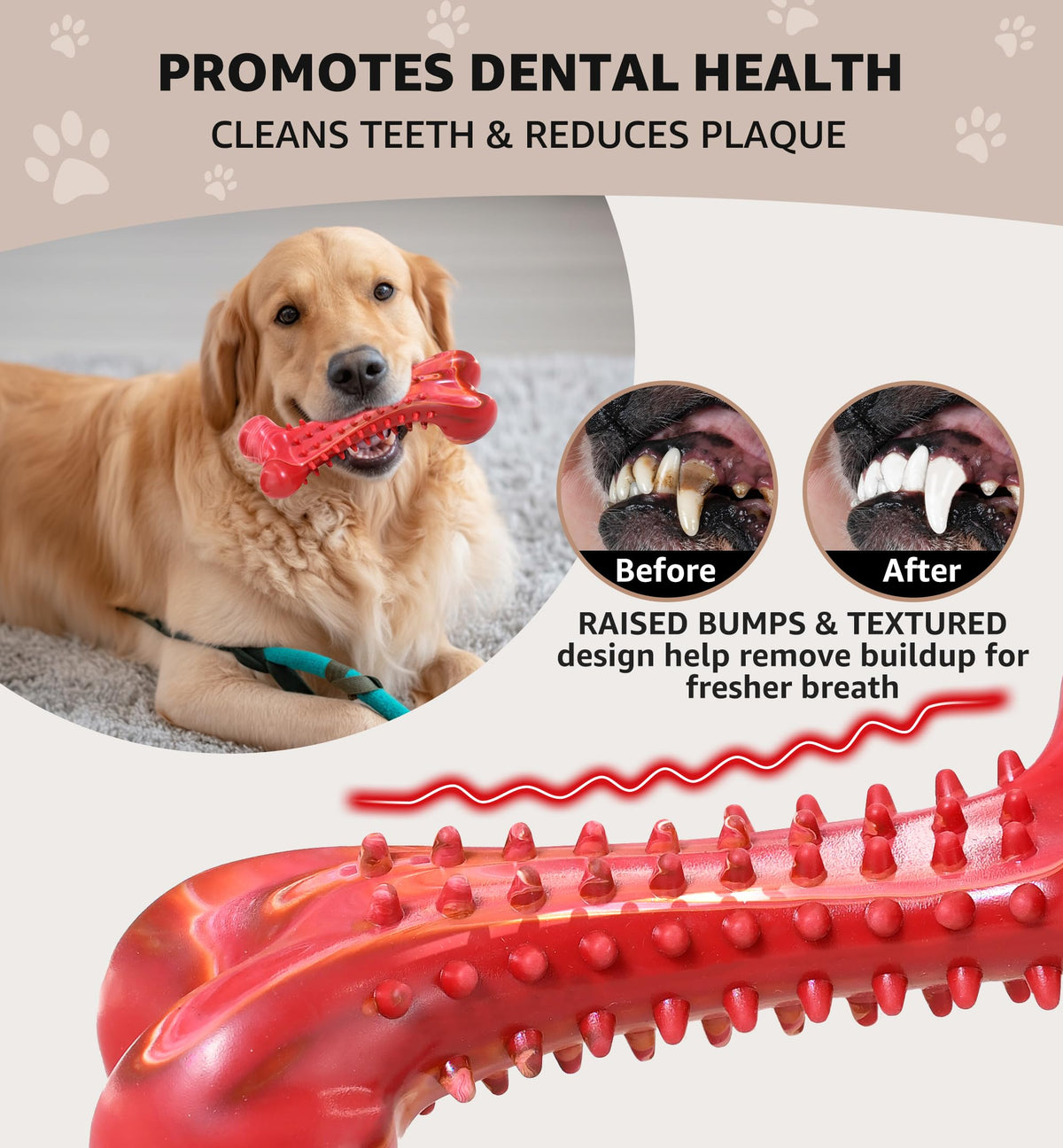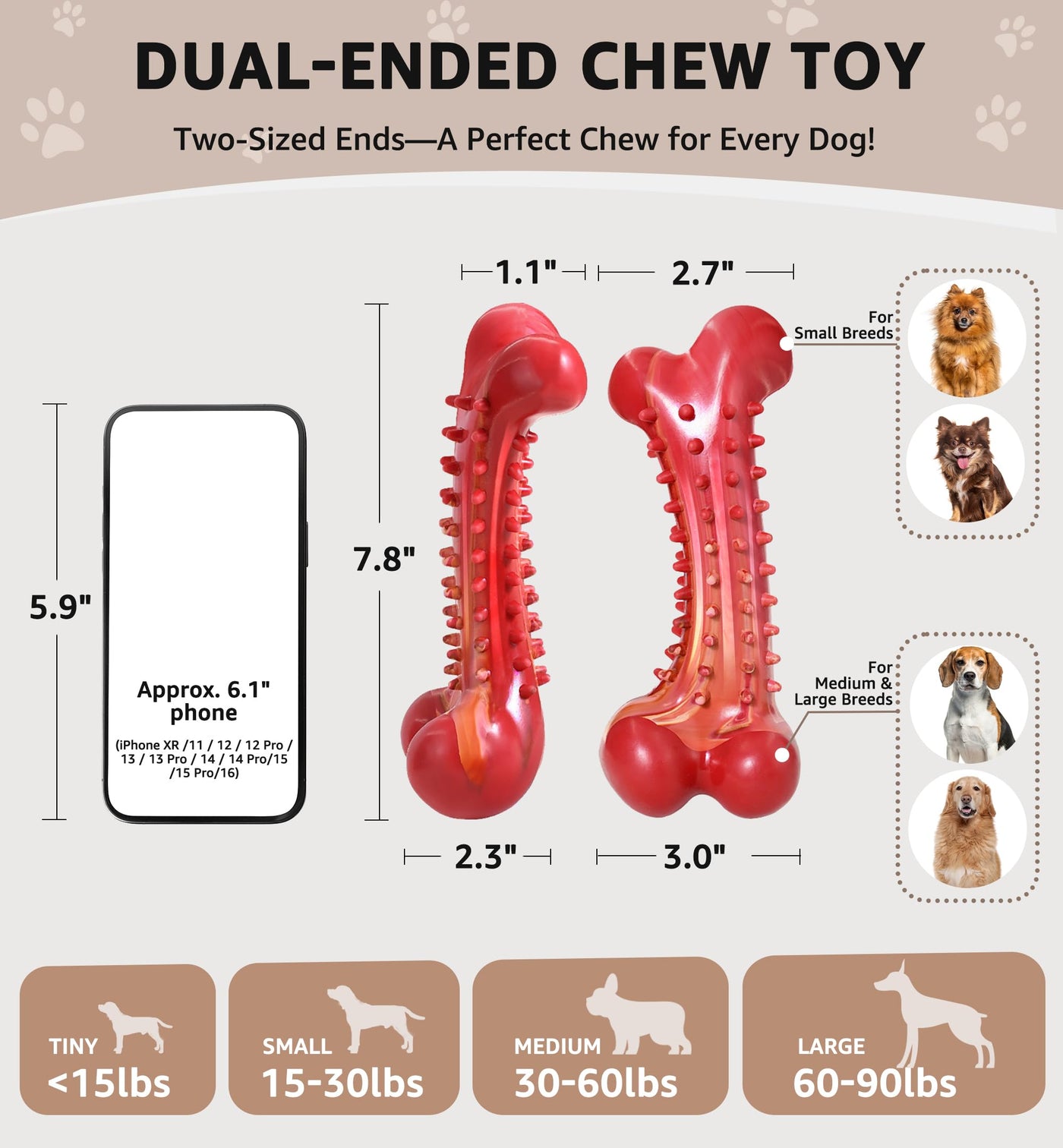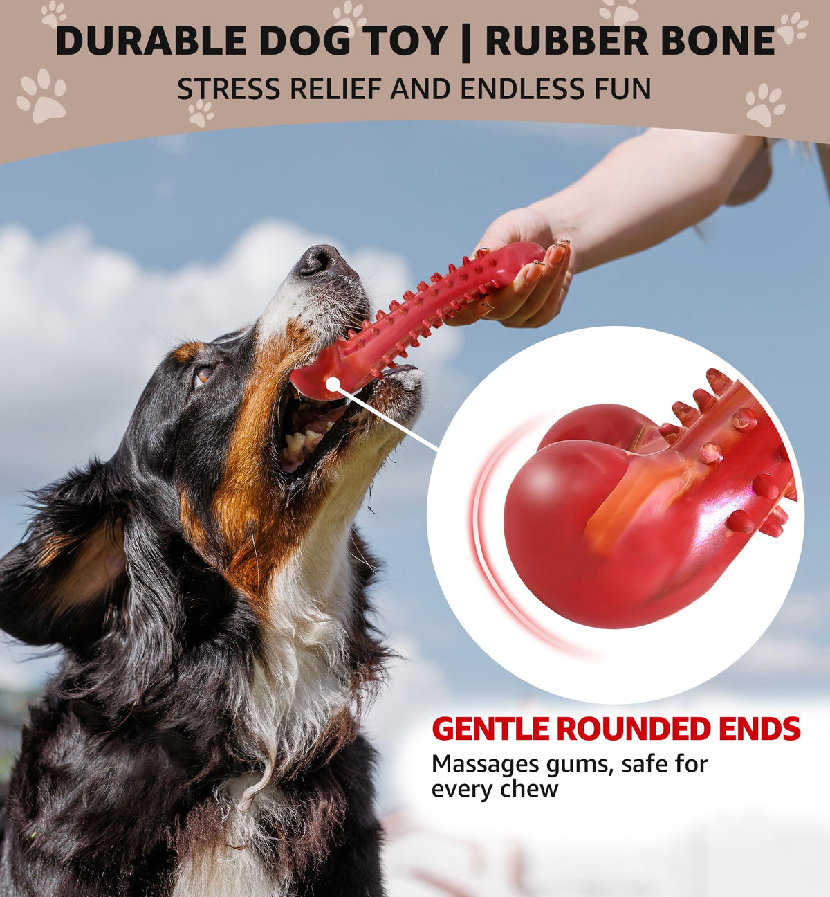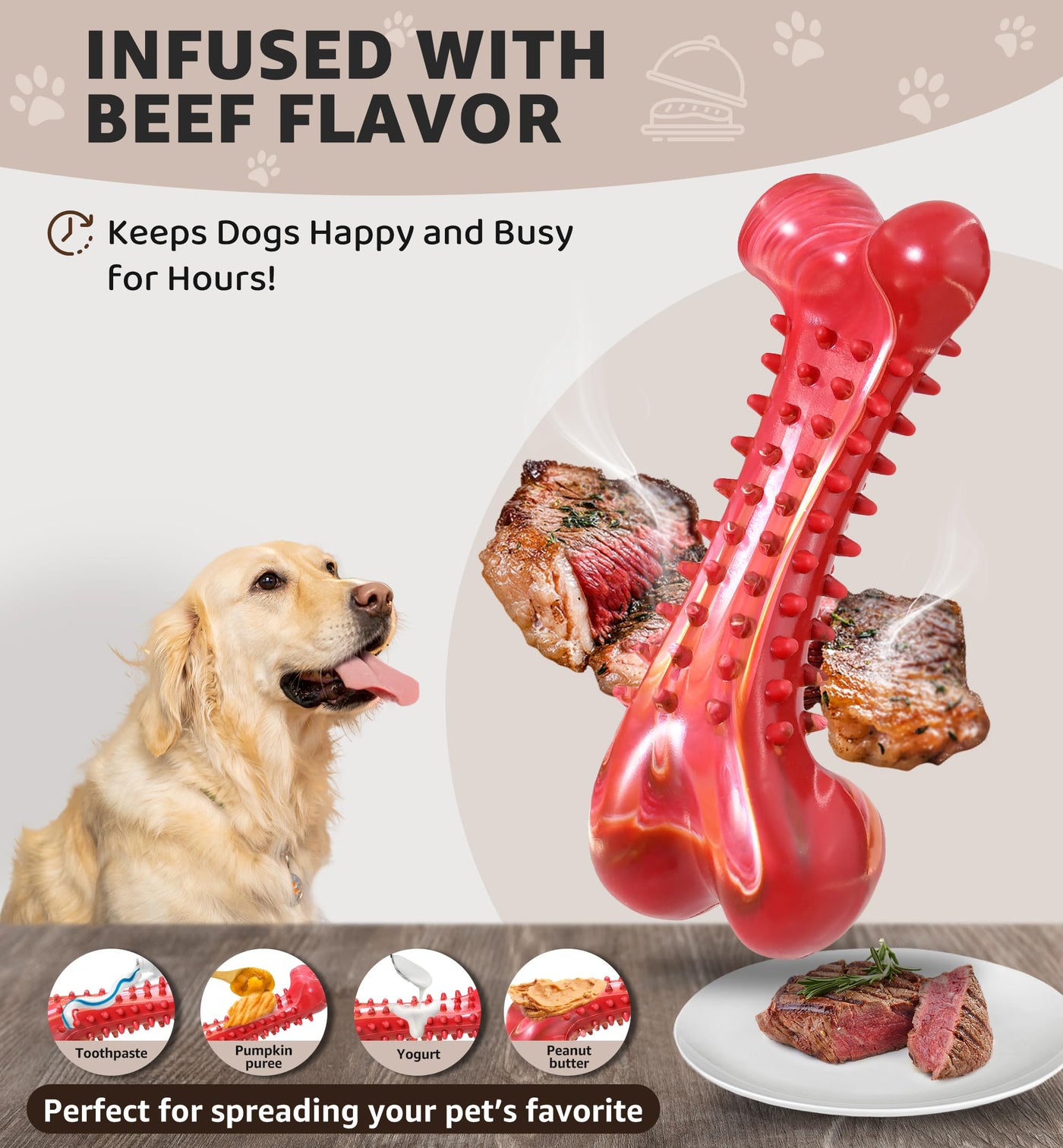 Iptpas Dog Chew Toy For Aggressive Chewers, Tough Natural Rubber Bone With Irresistible Beef Flavor, Long-Lasting Teeth Cleaning