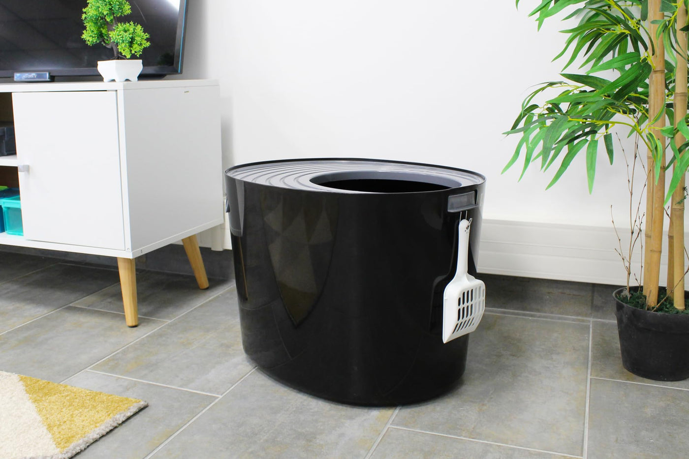 Product Descriptionknown As An Innovative, This Toilet House Also Has A Design That Blends Perfectly Into Your Interior. The Top Entrance Is Ideal For Cats Who Refuse Access To Their Litter Box With A Double Door. However, The Depth Of This Bowl Prevents Odours From Spreading Around Your Home, And The Grooved Lid Keeps The Litter Grains Back At Your Cat'S Exit To Keep The Interior Clean Every Day.Set Contains:Punt-530