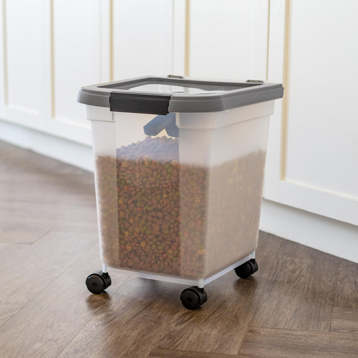IRIS USA Airtight Dog Food Storage Container 25 lbs, Removable Wheels, for Dog Cat Bird and Other Pets, Food Storage Bin, Keep F