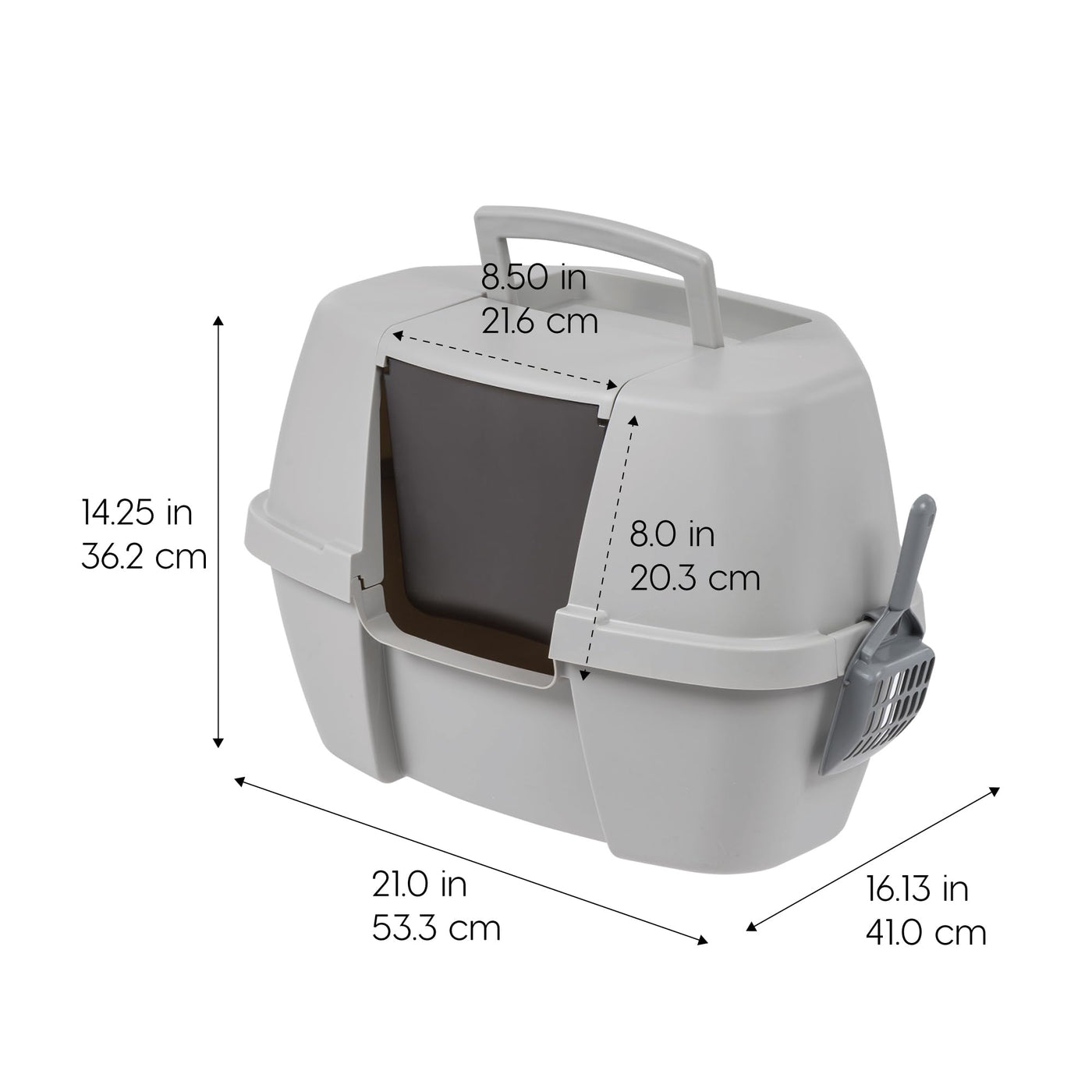Iris Usa Corner Cat Litter Box Enclosed With Scoop - Privacy And Easy Access For Cleaning, Odor Defensive Hooded Litter Tray, St