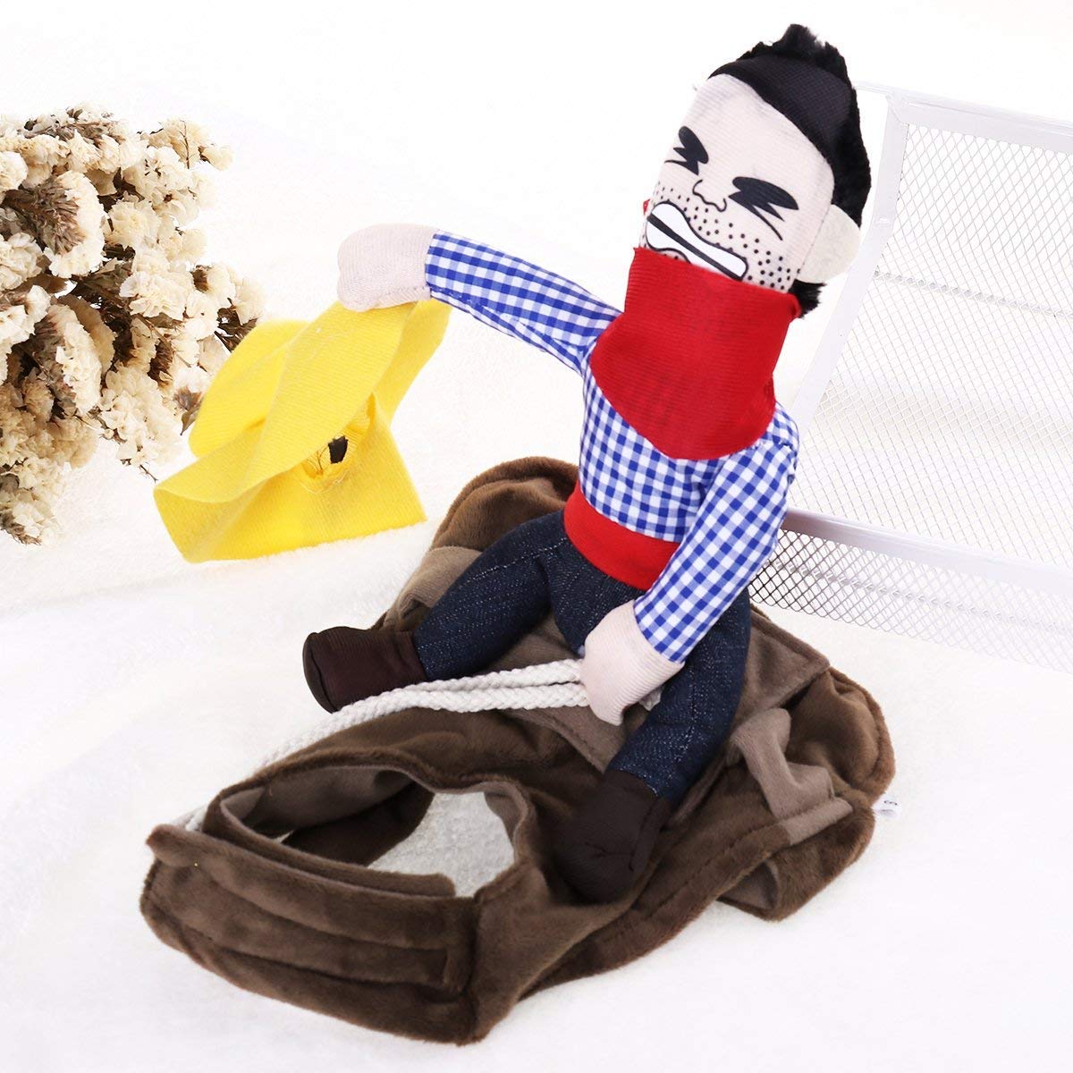 Description: This dog clothes is suitable for small dogs under 20lbs. Please take a measurement of your dog or cat before purchasing. A cowboy rider cosplay coat with hat for small pets, puppy dog, cat. Light and easy to wear. Your pet will like it very much!