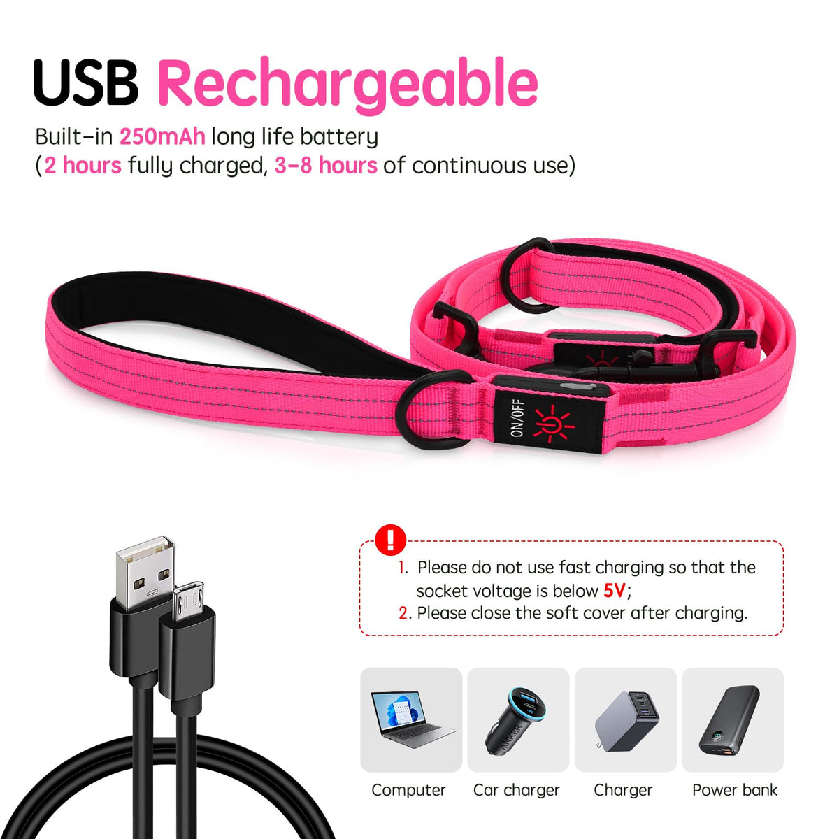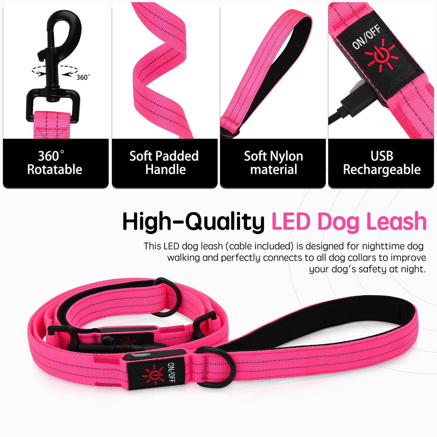 Itk Light Up Dog Leash, Led Leashes Rechargeable, Nylon Reflective Lead With Padded Handle For Night Walking, Safety Glow Lights