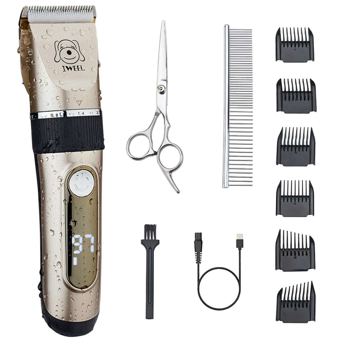 Iweel Dog Clippers, 2-Speed Professional Rechargeable Cordless Cat Shaver And Low Noise Water Proof Electric Dog Trimmer Pet Grooming Kit Animal Hair Clippers Tool With Scissors Combs