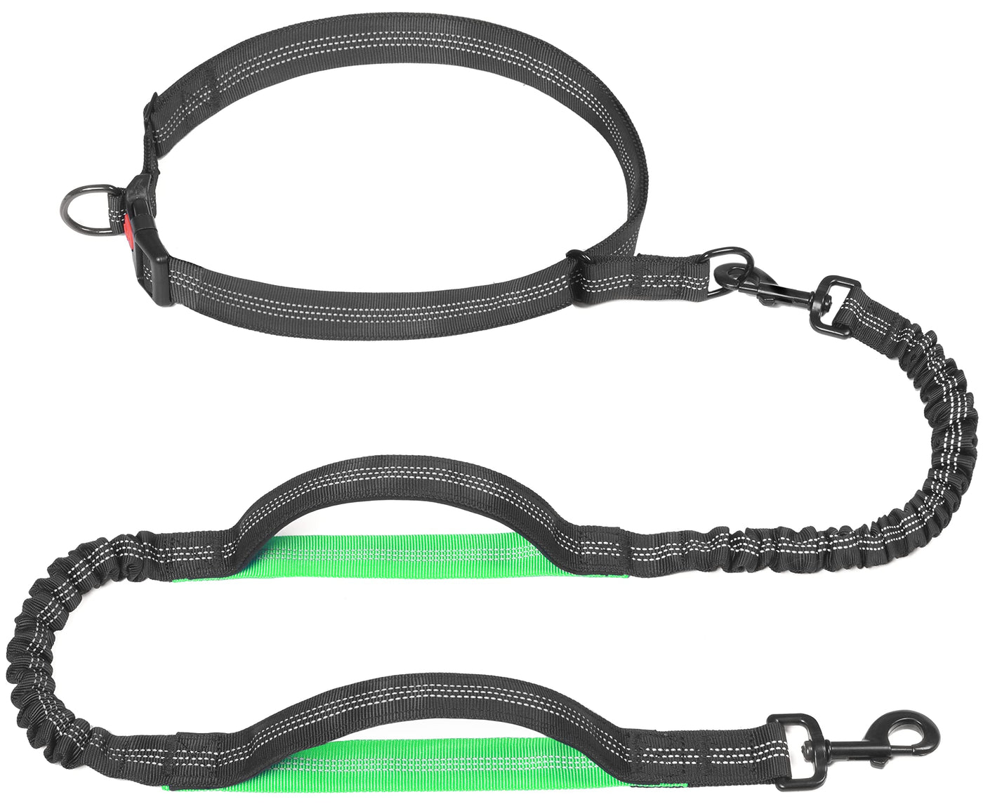 Q: What safety features does this leash have for nighttime use?A: The leash includes reflective stitching, which enhances visibility during low-light conditions, helping both you and your dog stay safe during evening walks or runs.