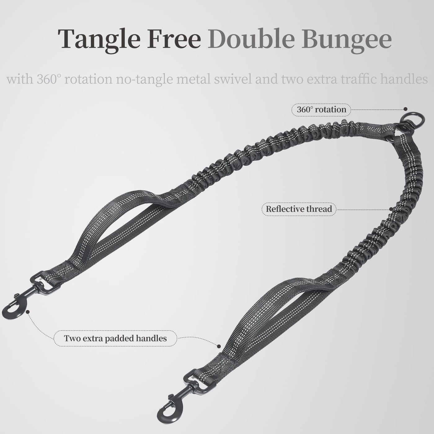 Iyoshop Double Dog Leash With Three Extra Traffic Handles, 360 Swivel No Tangle Dual Dog Walking Leash, Comfortable Shock Absorb