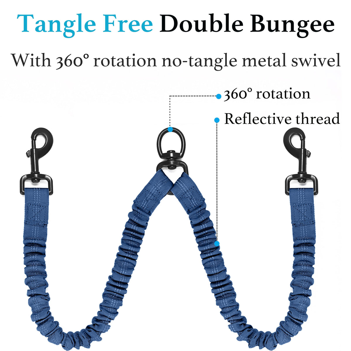 Iyoshop Dual Dog Leash, Double Dog Leash, 360 Swivel No Tangle Walking Leash, Shock Absorbing Bungee For Two Dogs, Large (25-150 Lbs), True Navy