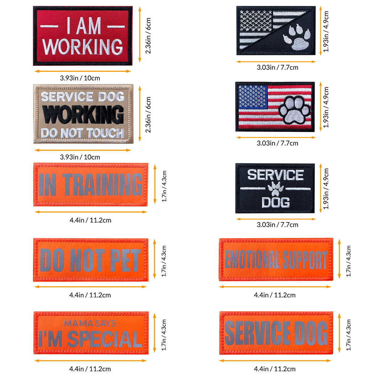 J.Carp 10 Pieces Service Dog Patches Don'T Pet In Training Do Not Touch I'M Special Full Embroidered Badge Emblem Patch For Dogs Harness Vest Clothes Orange