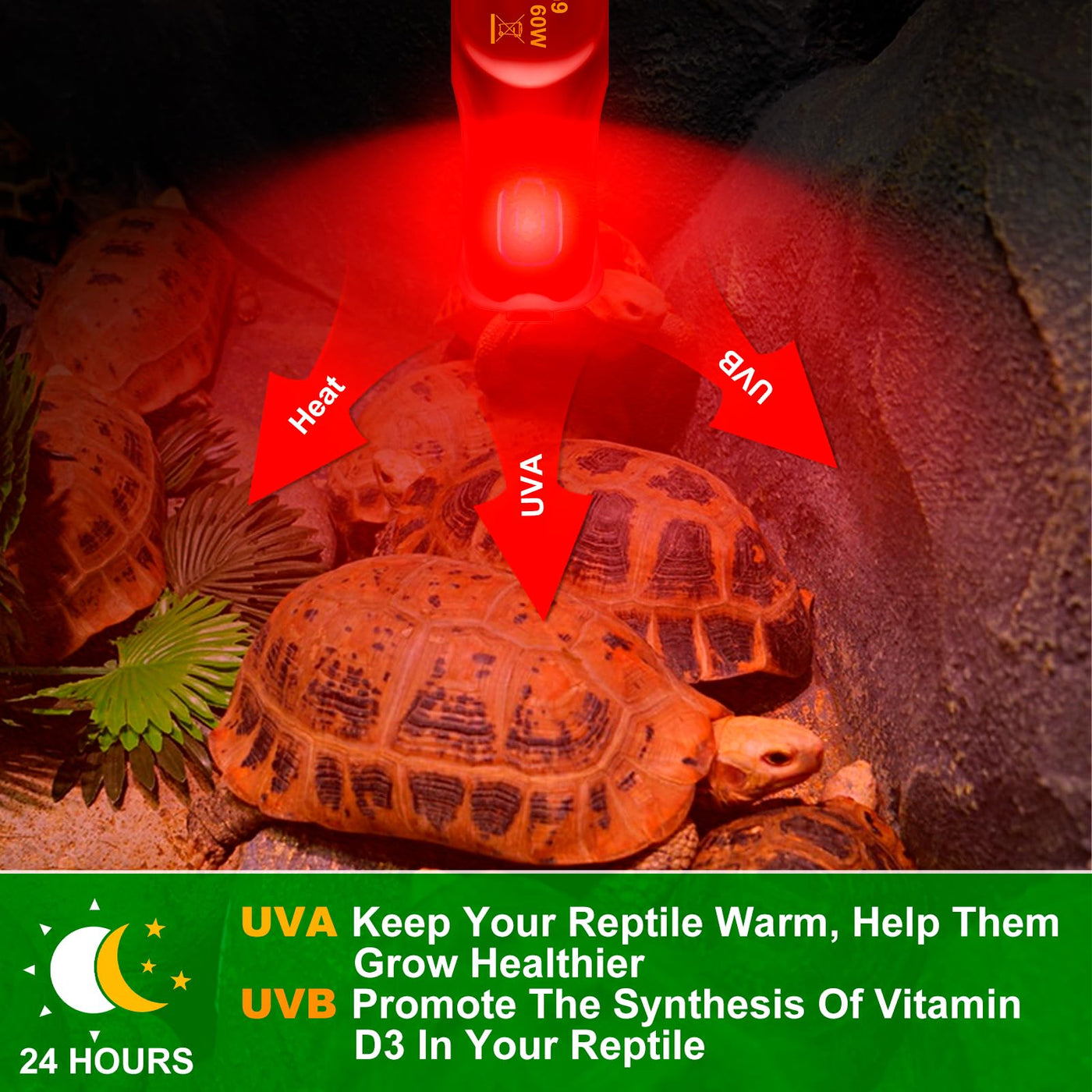 ?Why Reptile Heat Bulbs Is Needed?Jaenmsa UVA UVB reptile heat lamps provide the simulate natural sunlight closest to your reptiles' temperature environment to help them grow healthier & prevent metabolic diseases.