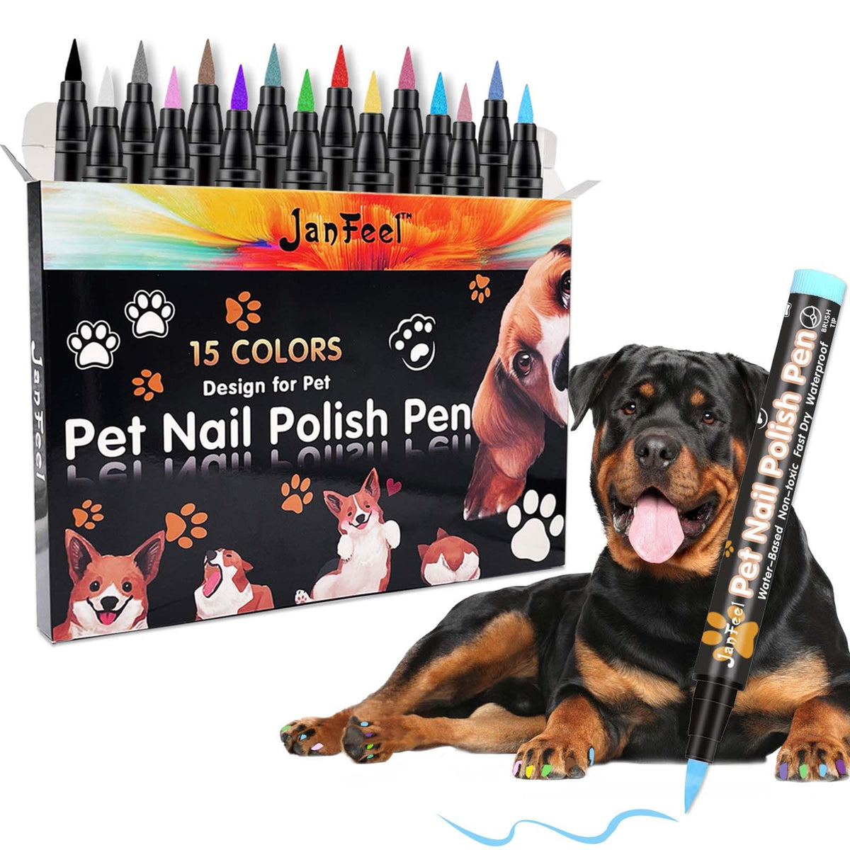 Janfeel Dog Nail Polish Pens, 15 Colors Pet Nail Polish Set Quick Dry Pet Safe Nail Polish Non Toxic Brush Tip Nail Polish Pens
