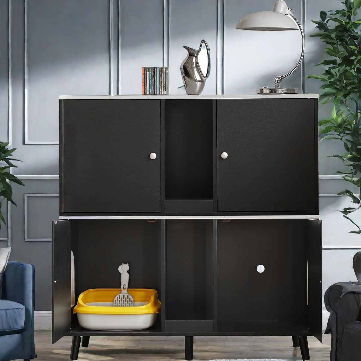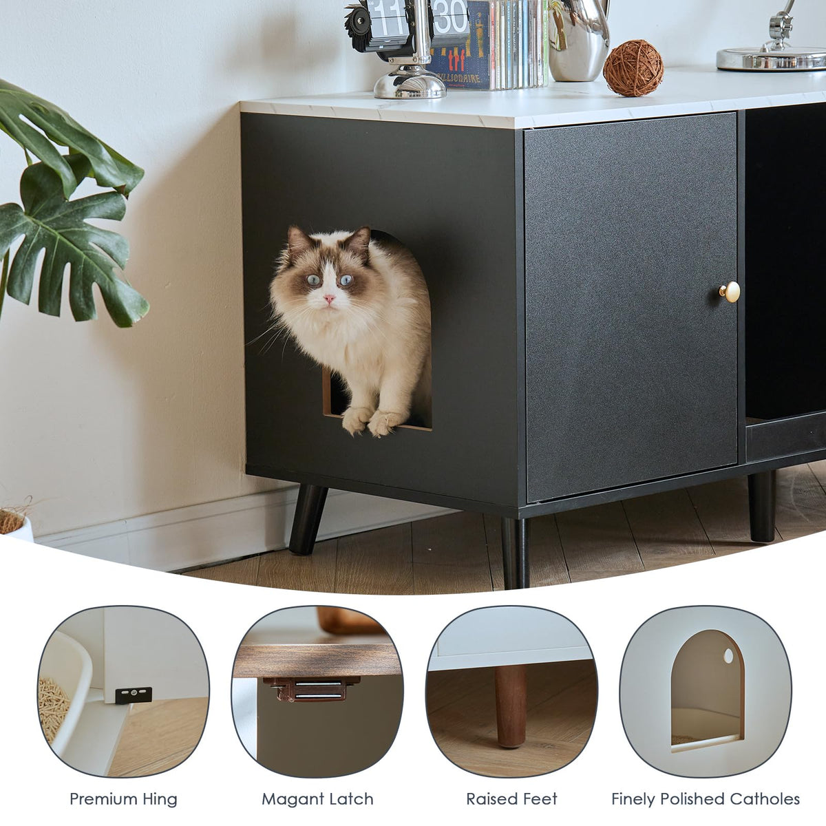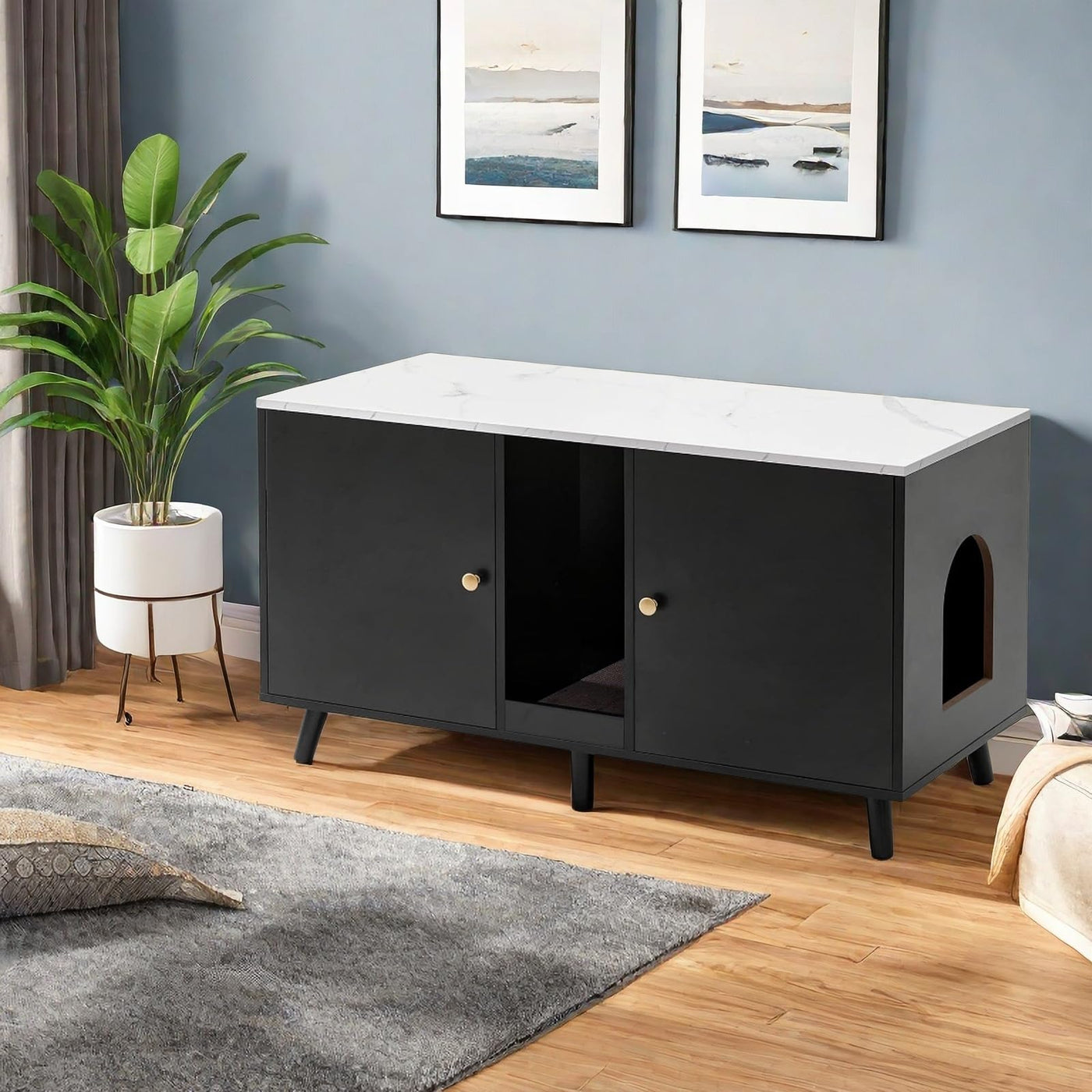 Janflyhome Litter Box Enclosure For 2 Cats, Double Hidden Cat Litter Cabinet Furniture With Scratching Pad, 42.5' End Table Tv