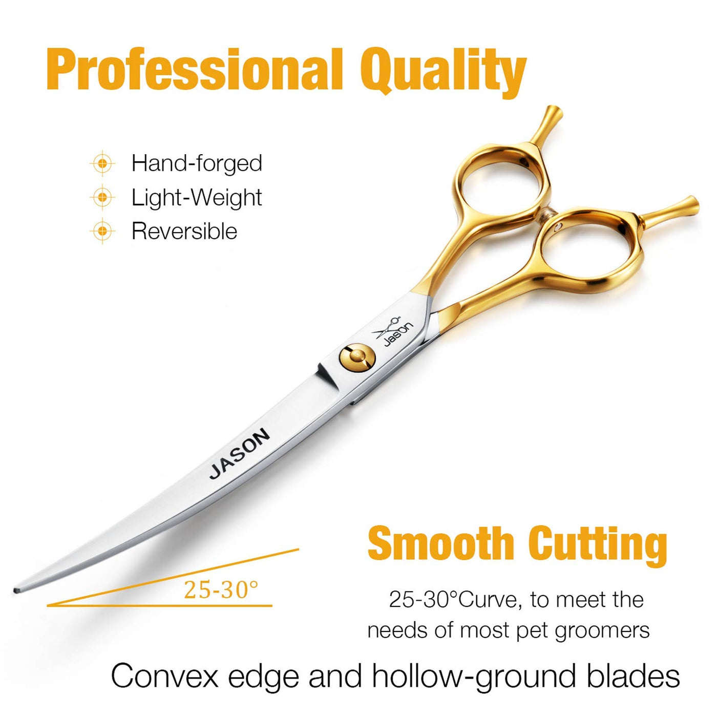 Jason 7.5' Curved Dog Grooming Scissors, Cats Grooming Shears Pets Trimming Kit For Right Handed Groomers, Sharp, Comfortable Shear