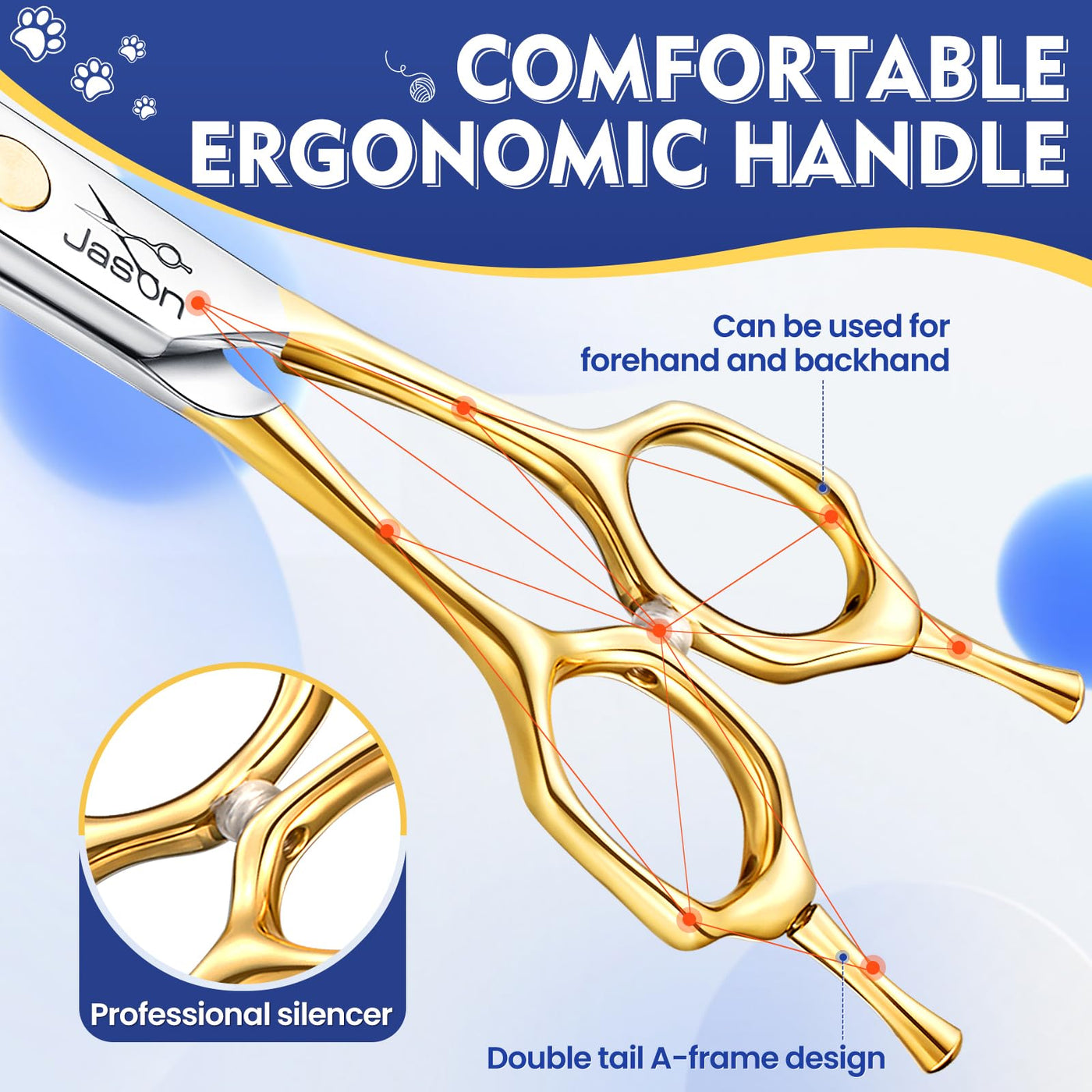 Jason 7.5 Inch Curved Chunker Scissors For Dog Grooming 19 Teeth Professional Downward Chunker Shears With Symmetric Handle Shar