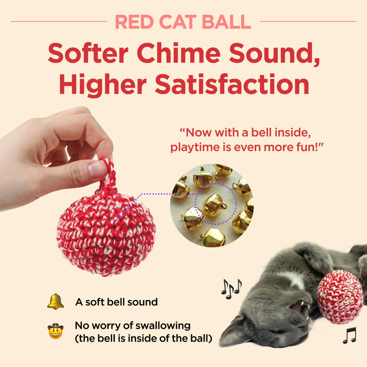Jayu Pet Red Cat Ball [W/Bell Version] - Handmade Silvervine Cat Toy With Catnip, Interactive Matatabi Ball For Indoor Cats & Ki