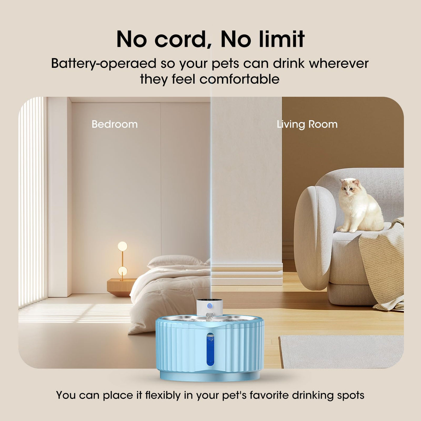 Jeeramia Wireless Cat Water Fountain, 94 Oz/2.8 L Battery Operated Pet Water Fountain For Cats Inside, Automatic Dog Water Fount