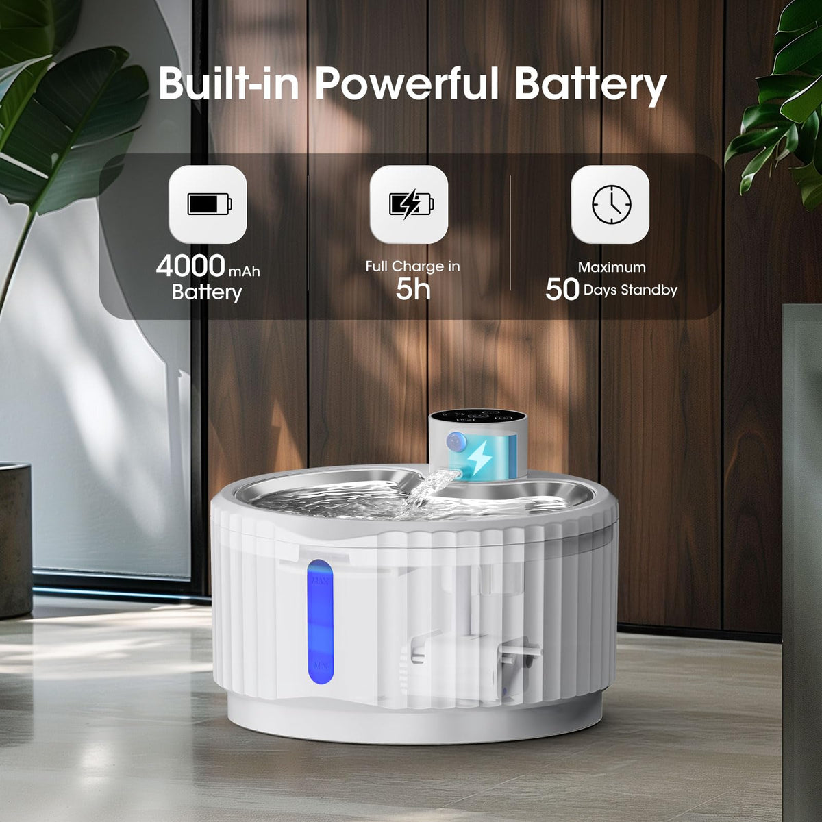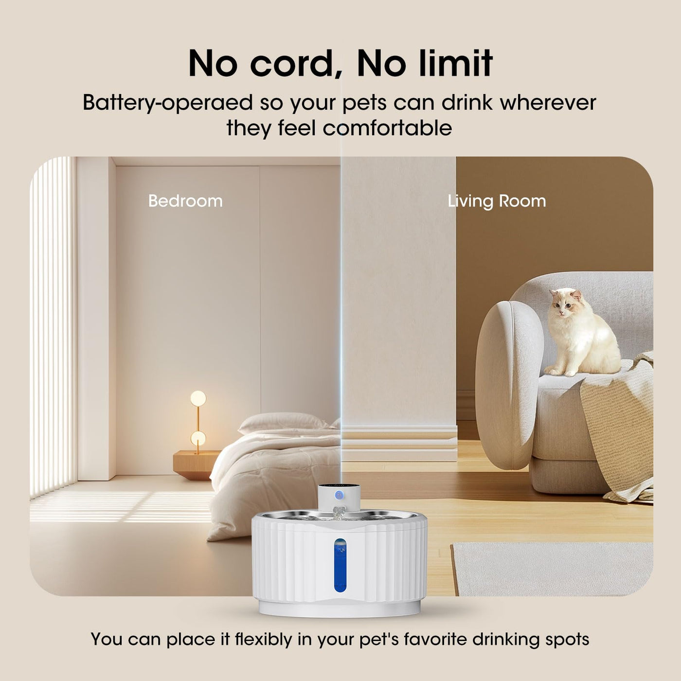 Jeeramia Wireless Cat Water Fountain, 95 Oz/2.8 L Battery Operated Pet Water Fountain For Cats Inside, Automatic Dog Water Fount