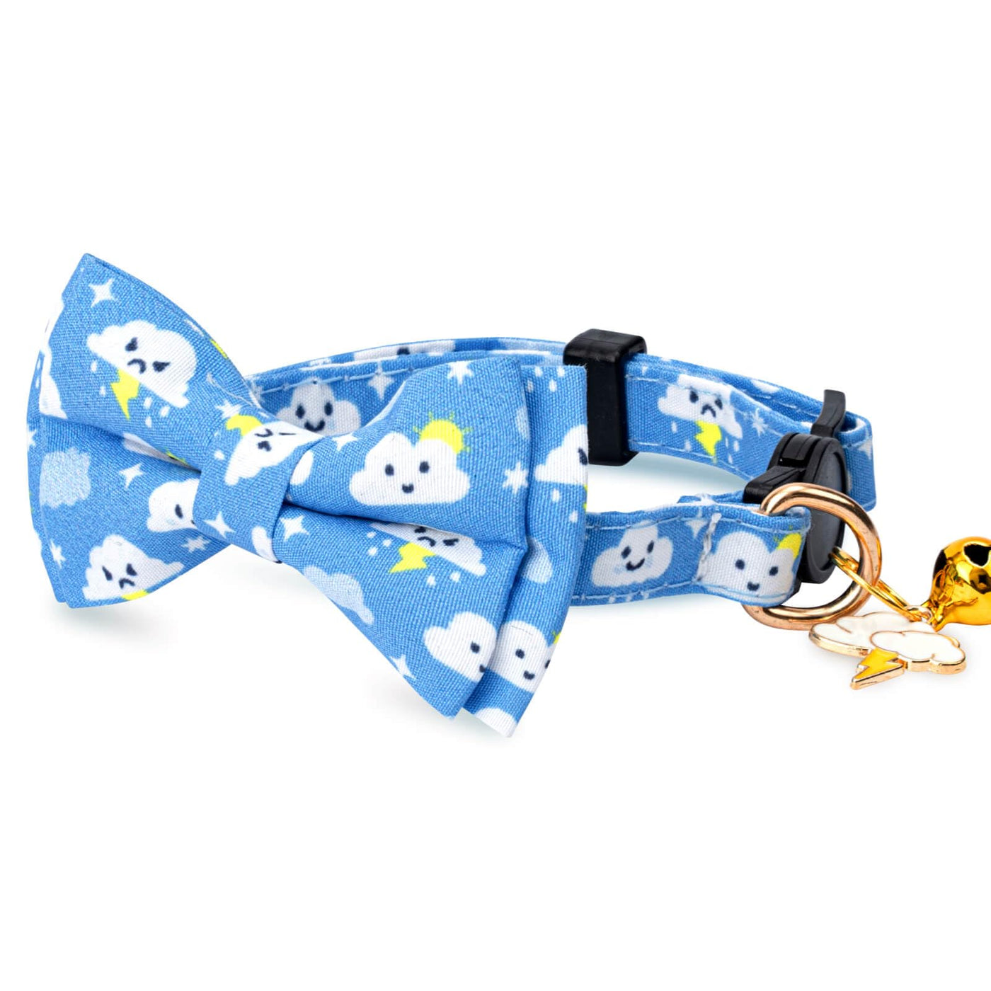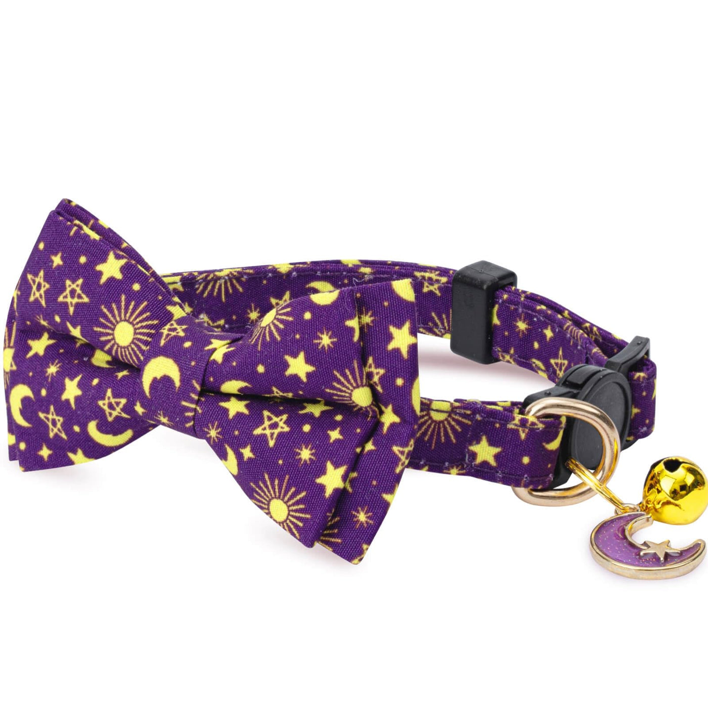 Jelwuion 2 Pack Cotton Cat Collar With Bow Tie And Bell For Girl Boy Cats,Cute Purple Moon And Blue Cloud Pattern Spring Summer Breakaway Cat Collar For Male Female Cats Please Note:1:Ensure That You Can Get Two Fingers Between Your Cat And The Collar For Safety And Comfort When You Fit Your Cat'S Collar. 2:Due To The Different Lighting Conditions And Device Displays,There Will Be A Slight Difference Between The Picture Color And The Real Object, Be,Please Refer To The Color Of The Received Real Object. 3:Check Your Kitten'S Skin Before Wear Them A Collar, If There'S An Issue With Their Skin, Please Go To See The Vet At First Time And Avoid To Wear A Collar For The Friction Between Collar And Skin Will Sharpen The Illness.