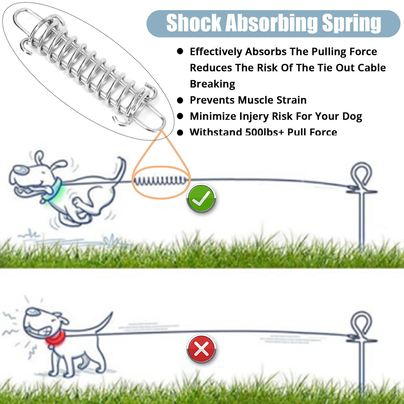 Jenico Dog Tie Out Cable, 10-150Ft Runner Cable With Swivel Hook And Shock Spring, Outdoor Dog Leash Tether For Small To Medium