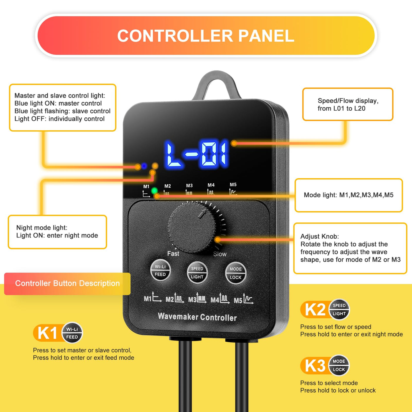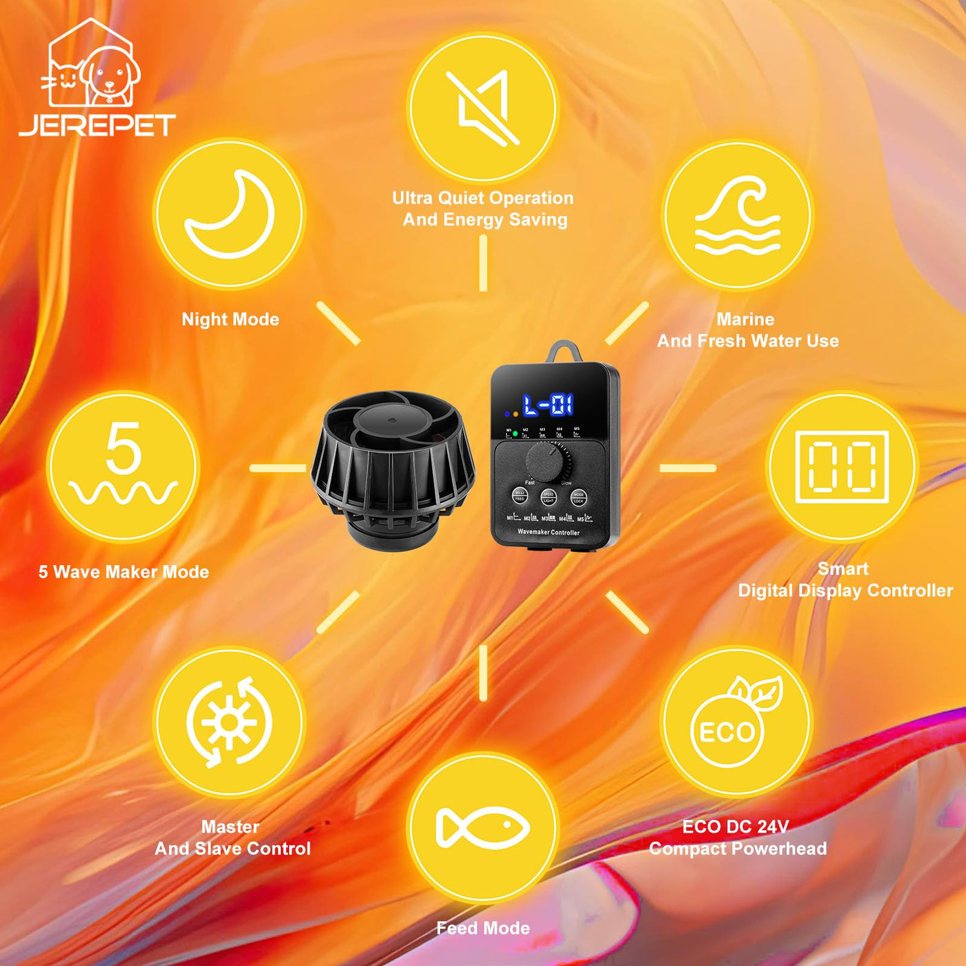 JEREPET 3400GPH Aquarium Wave Maker DC24V Power head with Magnetic Mounting,Wavemaker with Controller for 100-200 Gallon Fish Ta