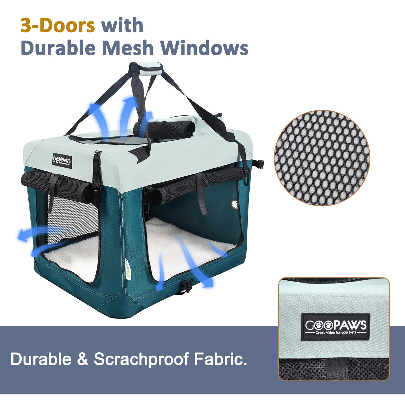 JESPET Soft Dog Crates Kennel for Pets, 3 Door Soft Sided Folding Travel Pet Carrier with Straps and Fleece Mat for Dogs, Cats,