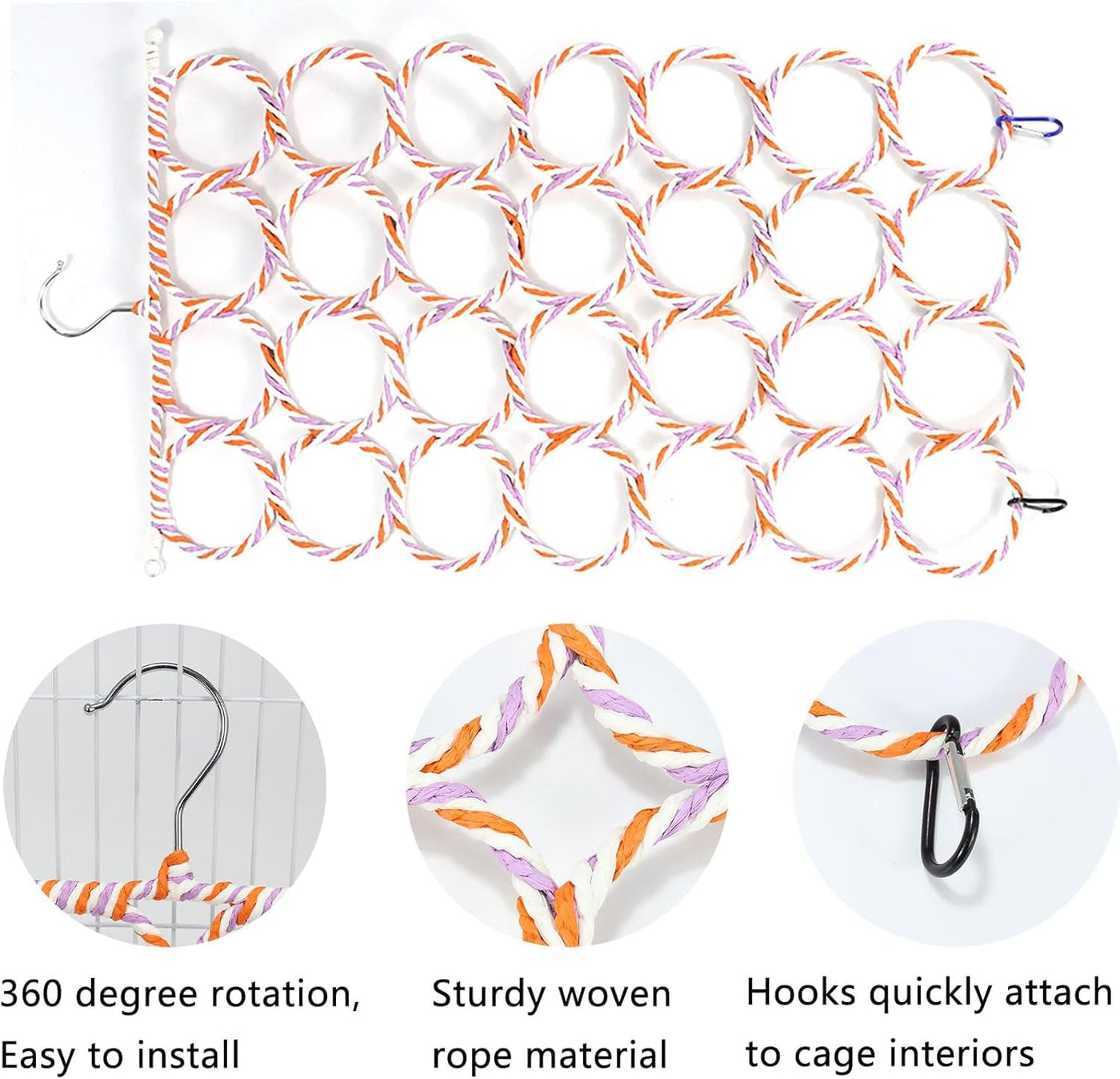 Jevnd 2 Pcs Rat Climbing Net Toy For Cage, Bird Hemp Rope Perch Swing, Ladder Bridge Hanging Hammock, Small Animal Activity Toy