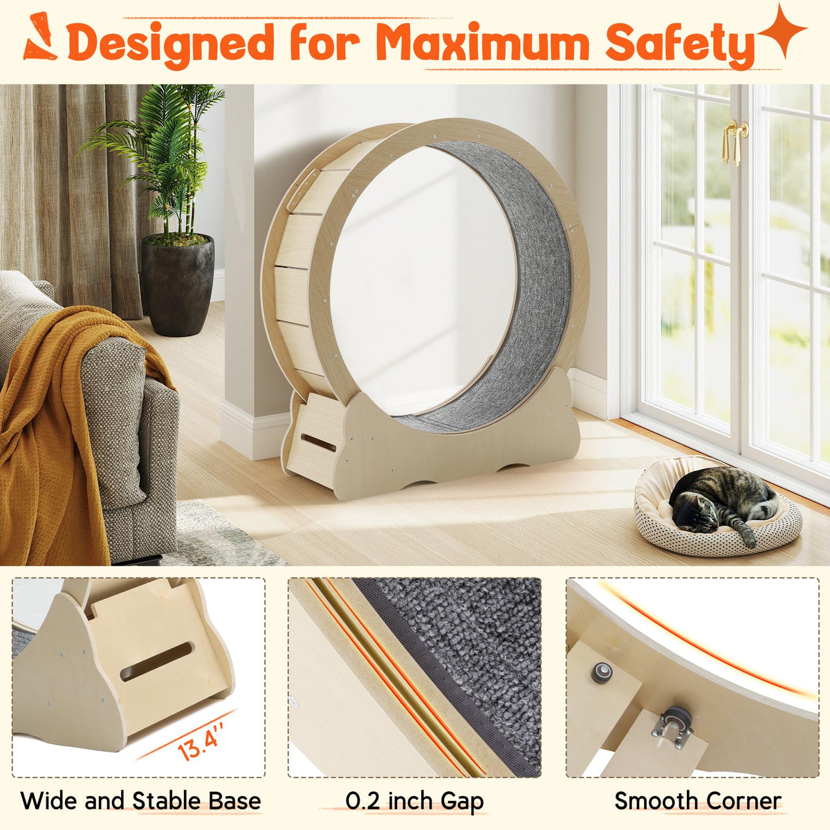 Jfhid Cat Wheel For Indoor Cats, Large Quiet Cat Treadmill With Detachable Carpeted Runway, 43.3 Cat Exercise Running Wheel For Pets Health And Entertainment, Natural