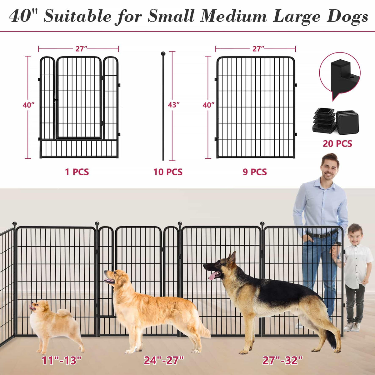 Jhsomdr Dog Playpen 40 inch 10 Panels Indoor Dog Pen for Large/Medium/Small Dogs Heavy Duty Metal Dog Fence Outdoor for Yard, Pu