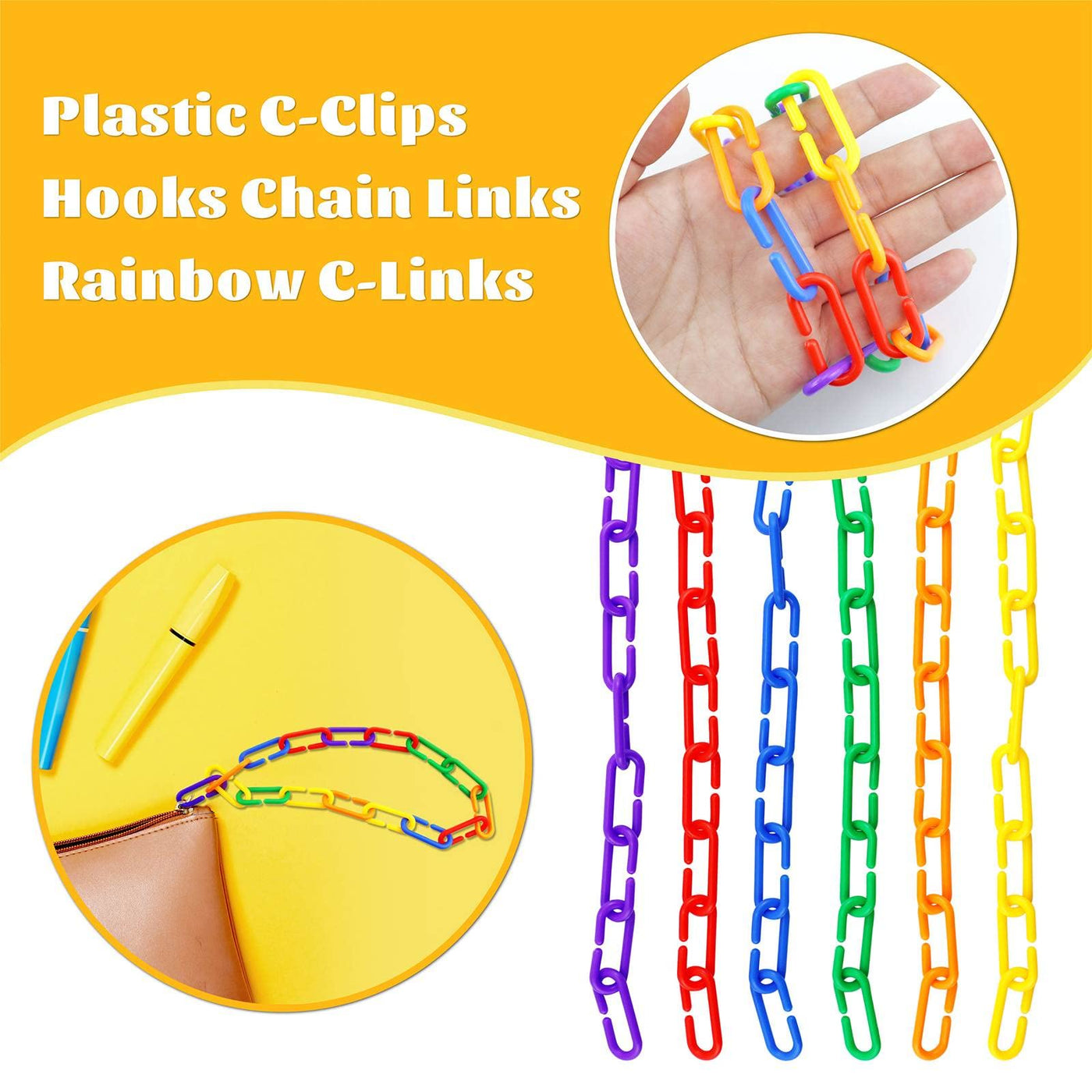 Jialeey 100 Piece Plastic C-Clips Hooks Chain Links Rainbow C-Links Children'S Learning Toys Small Pet Rat Parrot Bird Toy Cage