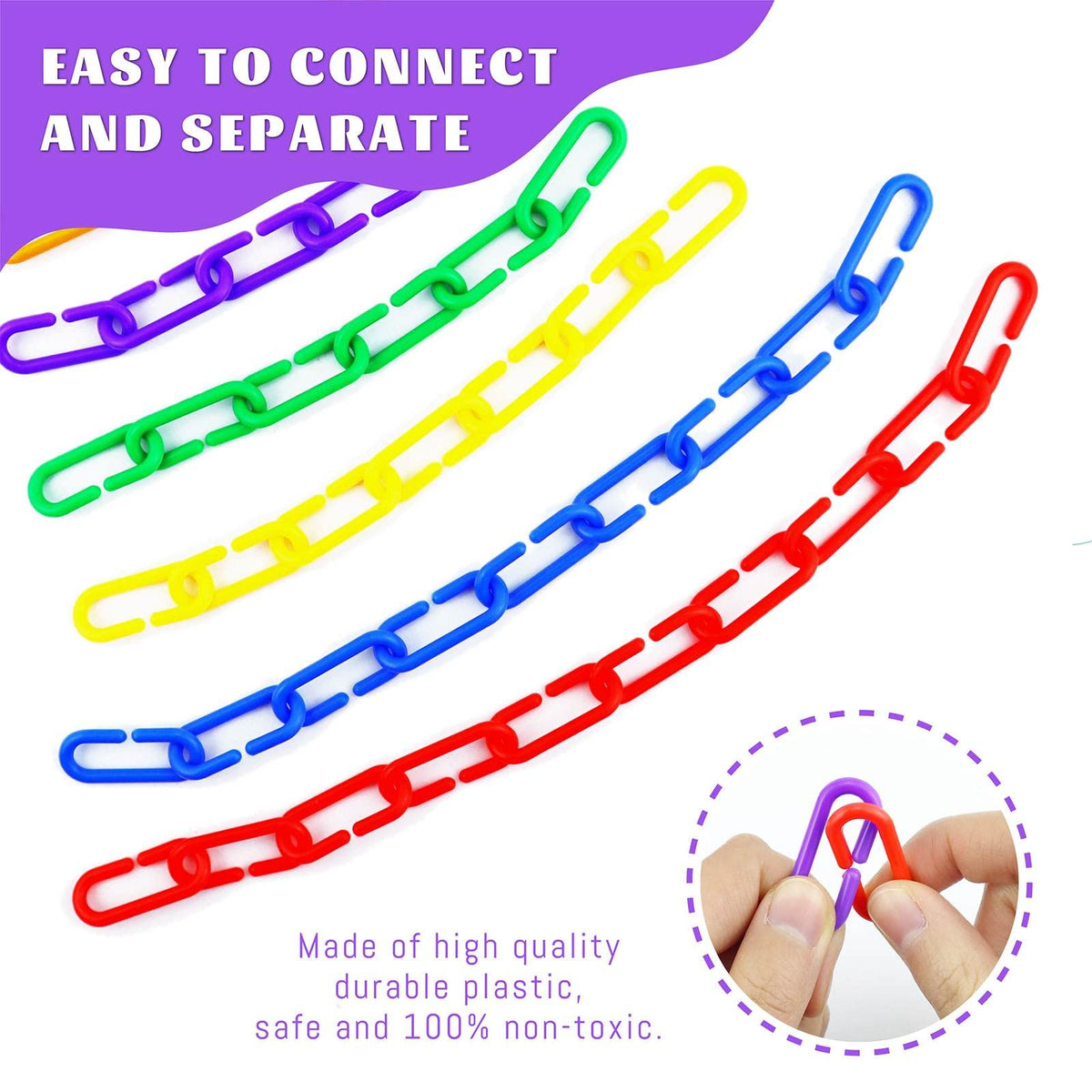 Q: How many plastic hooks are included in the package?A: The package includes a total of 100 pieces of multi-colored plastic hooks chain links.