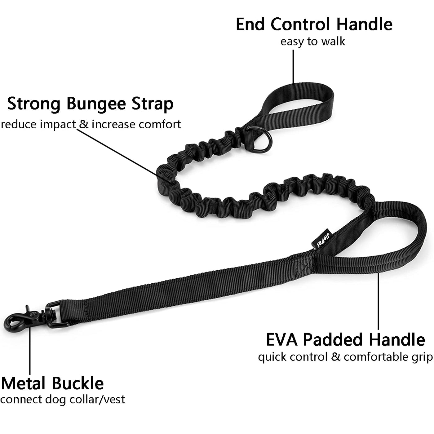 Jiepai Tactical Dog Training Bungee Leash Military Dog Leash Quick Release Elastic Leads Rope With 2 Control Handle, 4Ft For Medium Large Dogs, Black