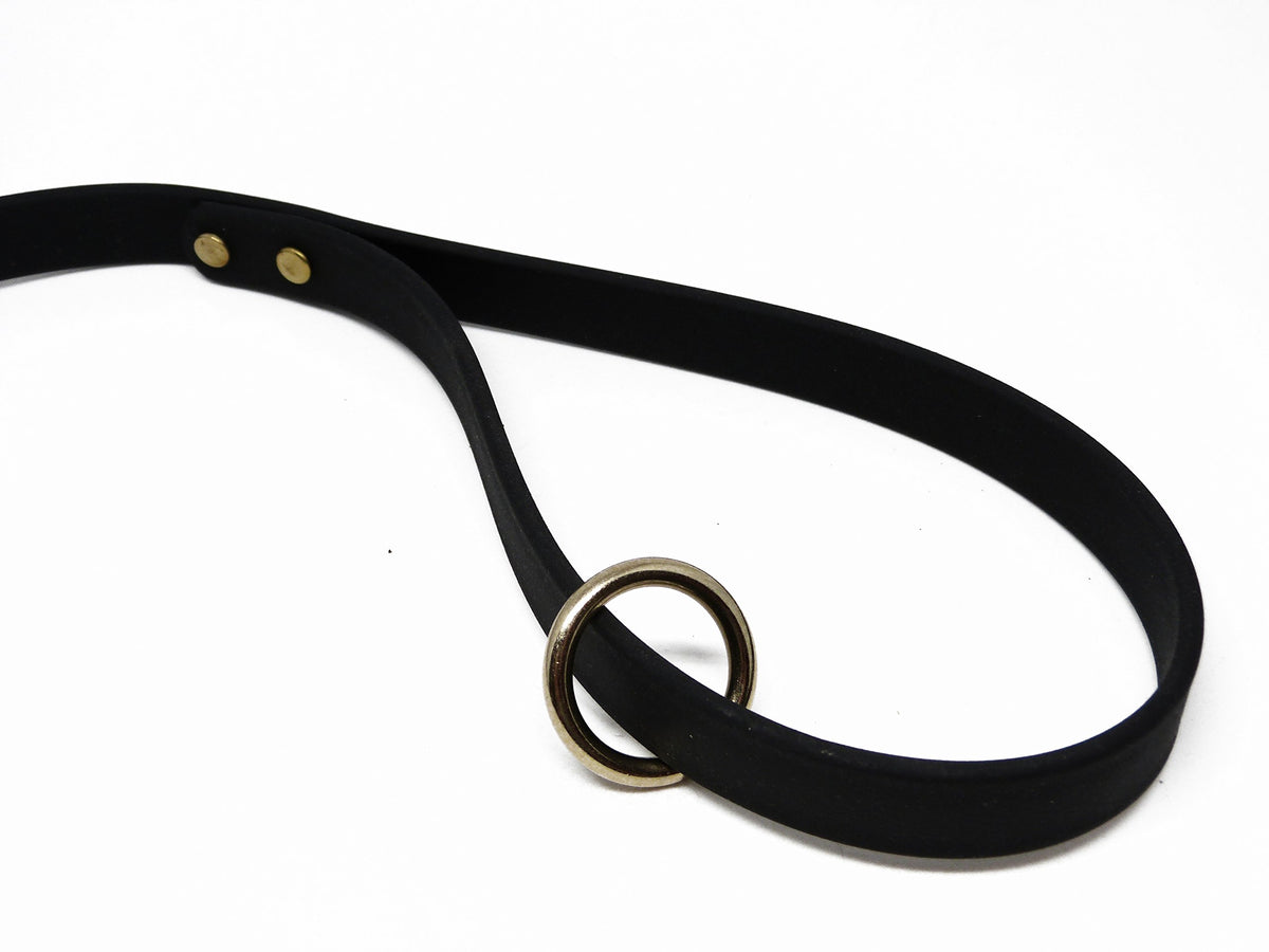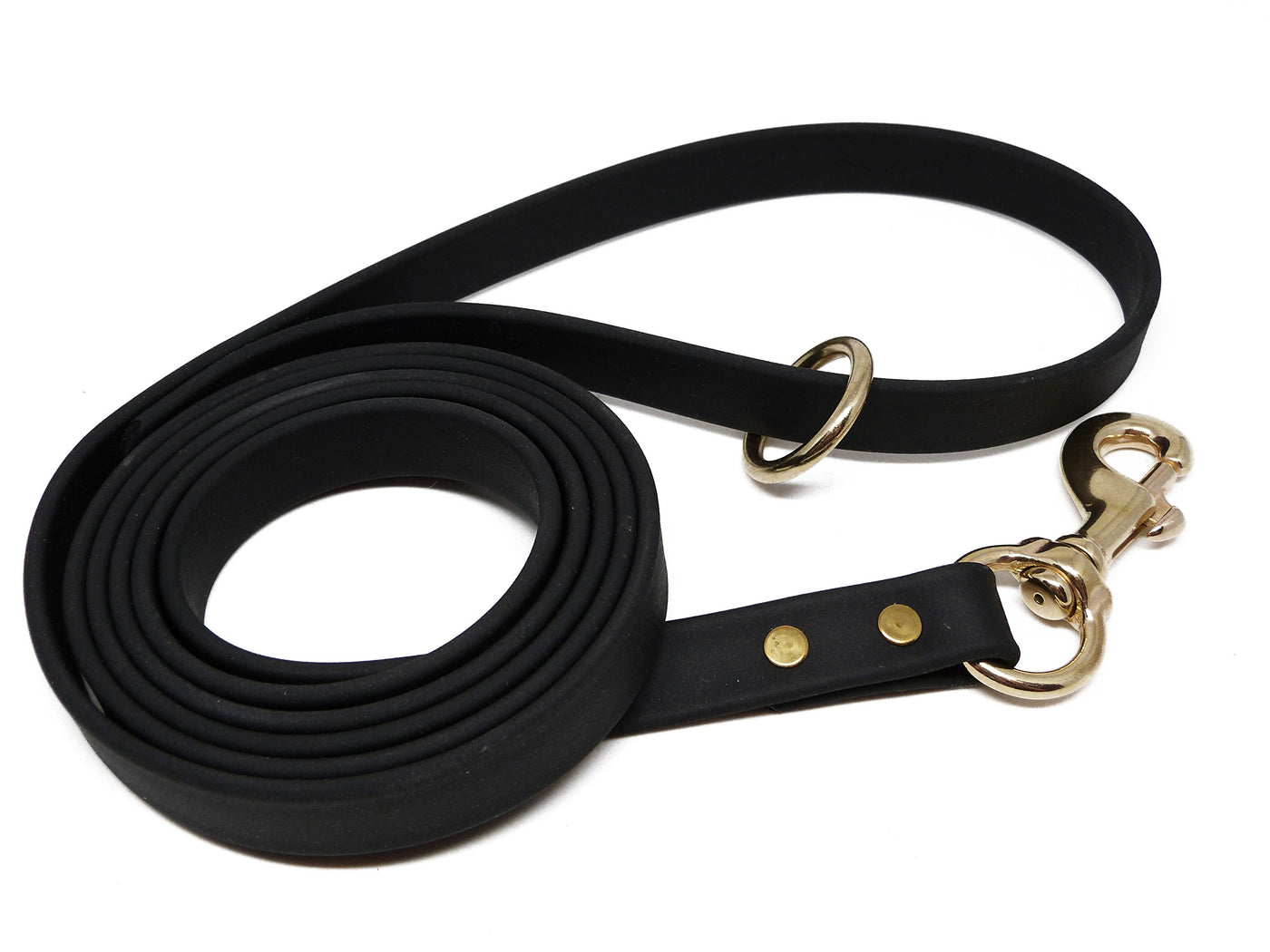 Q: Is the Gummy Dog Leash waterproof and weatherproof?A: Yes, the Gummy Dog Leash is made from Biothane, which is waterproof and weatherproof, providing durability and ease of cleaning in all weather conditions.