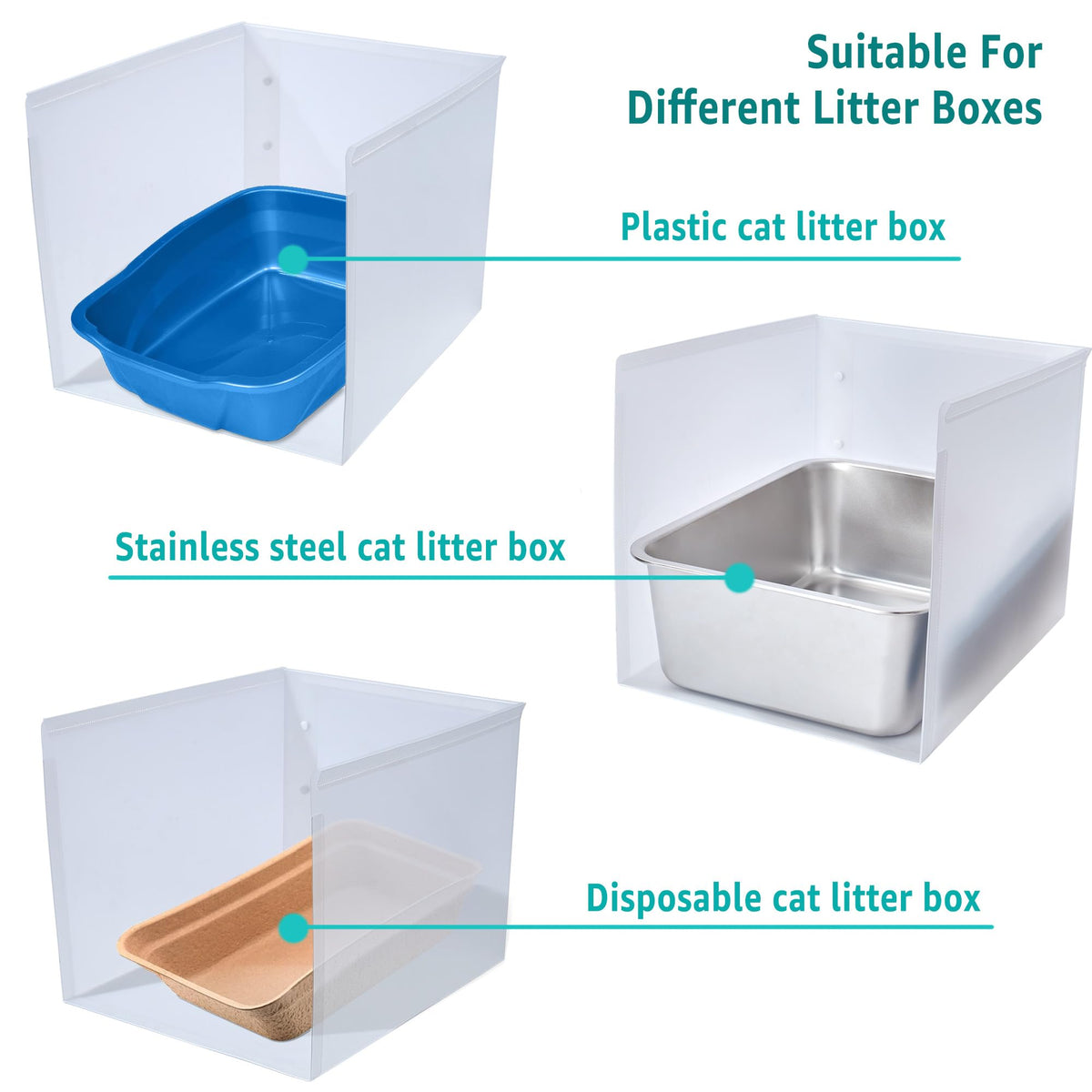 Why We Buy One Litter Box This Month And Another Next Month? Because Either These Kitty Litter Box Stick Litter Or Hard To Wash Or Absorb Odors Or Not High Enough To Prevent The Pee And Litter Flying Everywhere. Now, You Have A Perfect Solution. The Non-Stick, No Smell, Easy Clean Stainless Cat Litterbox Plus Our Extra High Side Unique Design Litter Box Enclosure, Everything Will Be Done.