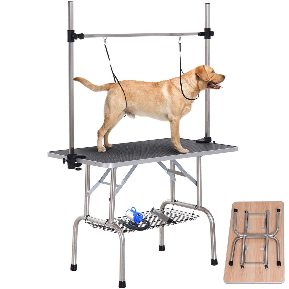 Jintangli Pet Dog Pet Grooming Table For Large Dogs Adjustable Height Heavy Duty Professional Portable Trimming Table With Arm/Noose/Mesh Tray, Maximum Capacity Up To 330 Lbs, 36''/Black