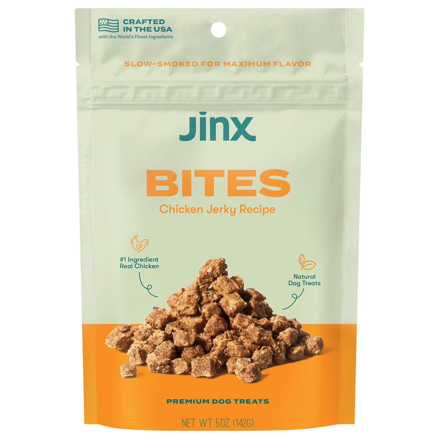 Little treat, big reward. Chicken Bites Natural Soft Jerky Dog Treats feature slow-smoked chicken as the first ingredient for a taste your dog will drool over. These snackable, low calorie jerky cubes are packed with protein and have a soft and chewy texture, making Jinx Chicken Bites the perfect treat for dogs of all ages, sizes and breeds.