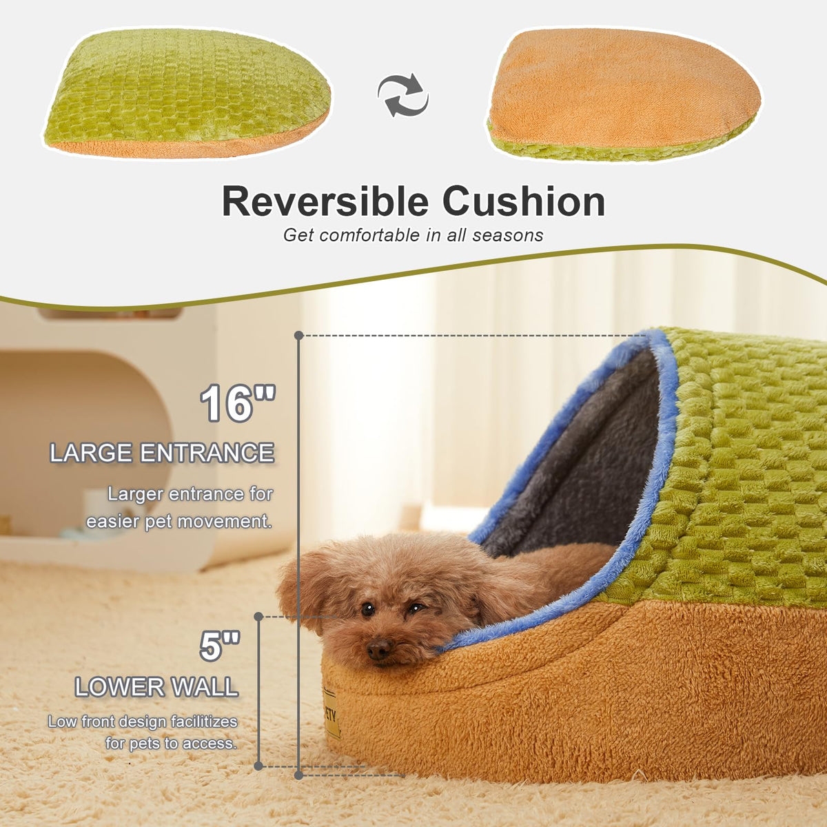 Product Name: Indoor Cat Bed Cave With Anti-Slip Bottom Hideway Cat House Washable Removable Cushion. Feature: 1?The Cat Cave Provides A Cozy And Safe Hideway For Cats, Meet The Pet Nature, Make Relieve Anxiety. 2?Double-Sided Cushion Design, You Can Freely Choose The Color For Your Pet And House Decoration Style. 3?The Cat House Is Soft And Comfortable Touch, Your Pet Will Get Cloud-Like Experience. 4?Anti-Slip Bottom Of The Cat Bed Cave Can Effectively Preventing The Pet Bed From Moving. Specification: Material: Soft Crystal Velvet Sponge High Springback Pp Cotton Dimensions: L(19''X17''X16'') Color: Green Package Includes: 1 X Cartoon Pet Nest