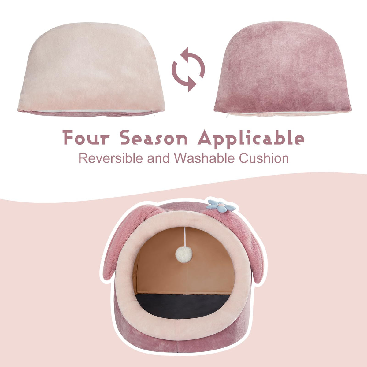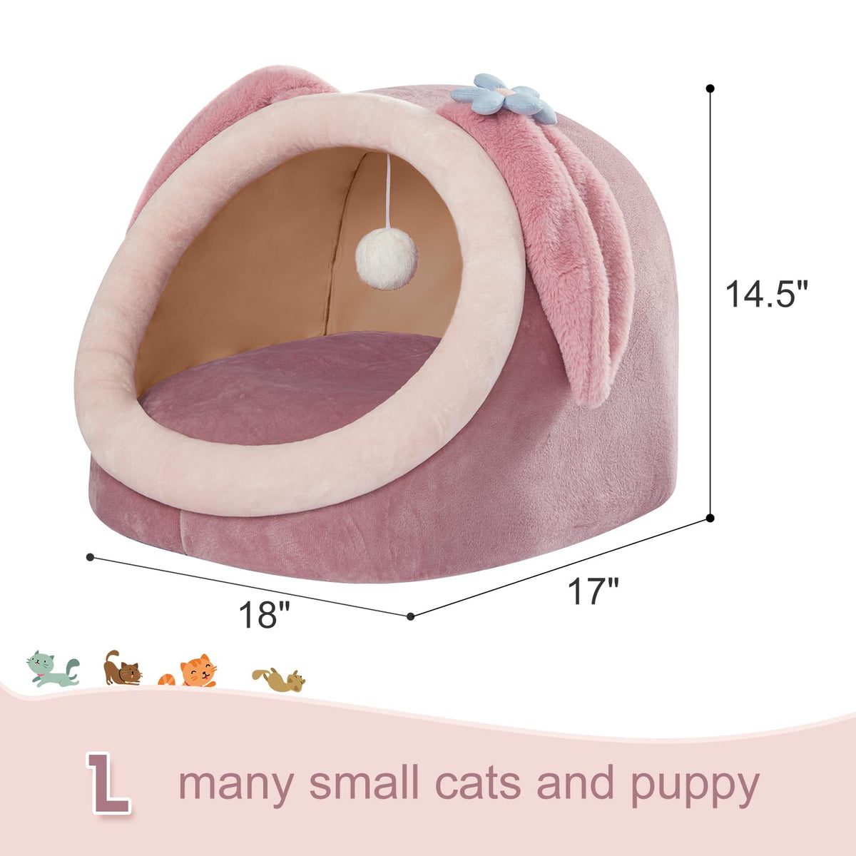 Jiupety Cute Cat Bed For Indoor Cats, Warm Soft Cave Fit For Many Cats And Puppy, Pink Rabbit, L