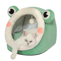 Product Name: Cute Cat Bed Comfortable Cat Igloo Puppy Tent Indoor Warm Non-Slip Cat Cave Feature: 1. Cartoon Style Modeling Is Very Cute And Interesting. 2. Cute And Interesting Animal Shapes And Furry Balls Will Make Cats Appear Particularly Playful And Clever. 3. The Fabric Is Soft, Wrinkle-Free And Has A Solid Feel. 4. Warm Design: The Inner Pillow Has Different Colors On Both Sides And Can Be Replaced. Specification: Material: Soft Crystal Velvet Sponge High Springback Pp Cotton Dimensions: M(15''X14.5''X12.5'') Color: Lovely Frog Package Includes: 1 X Cartoon Pet Nest