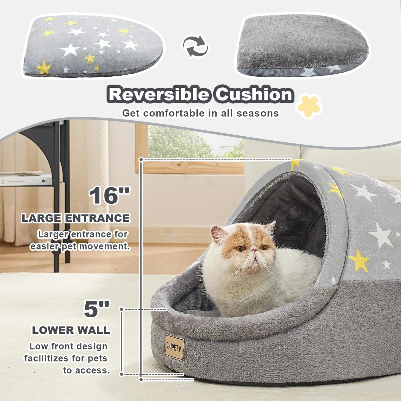 Product Name: Indoor Cat Bed Cave With Anti-Slip Bottom Hideway Cat Bed For Indoor Cats Washable Removable Cushion. Feature: 1?The Cat Cave Provides A Cozy And Safe Hideway For Cats, Meet The Pet Nature, Make Relieve Anxiety. 2?Double-Sided Cushion Design, You Can Freely Choose The Color For Your Pet And House Decoration Style. 3?The Indoor Cat House Is Soft And Comfortable Touch, Your Pet Will Get Cloud-Like Experience. 4?Anti-Slip Bottom Of The Cat Bed Cave Can Effectively Preventing The Pet Bed From Moving. Specification: Material: Soft Crystal Velvet Sponge High Springback Pp Cotton Dimensions: L(19''X17''X16'') Color: Gray Star Package Includes: 1 X Cute Pet Bed