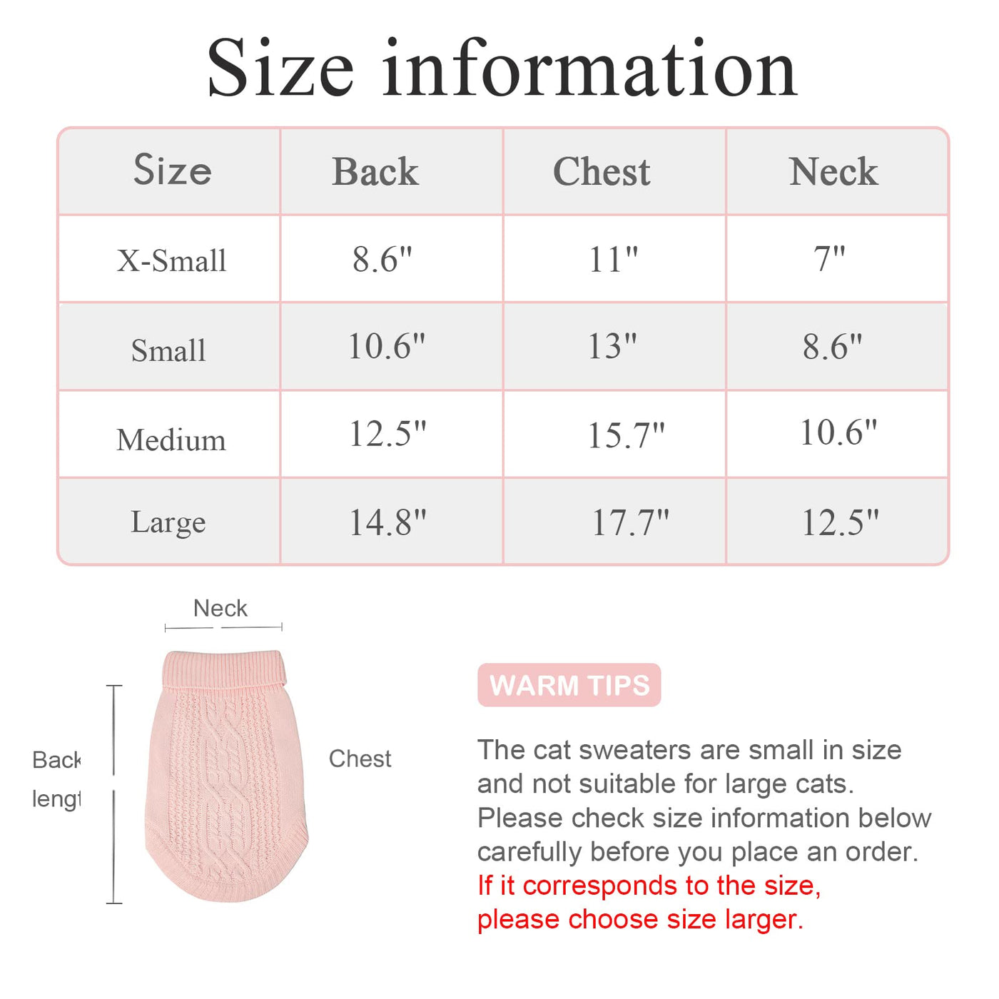 ?Love: We have 4 sizes /14 color to choose from cat clothes suitable for almost any breed of cats.The cat sweaters are small in size please check size information before you place an order.