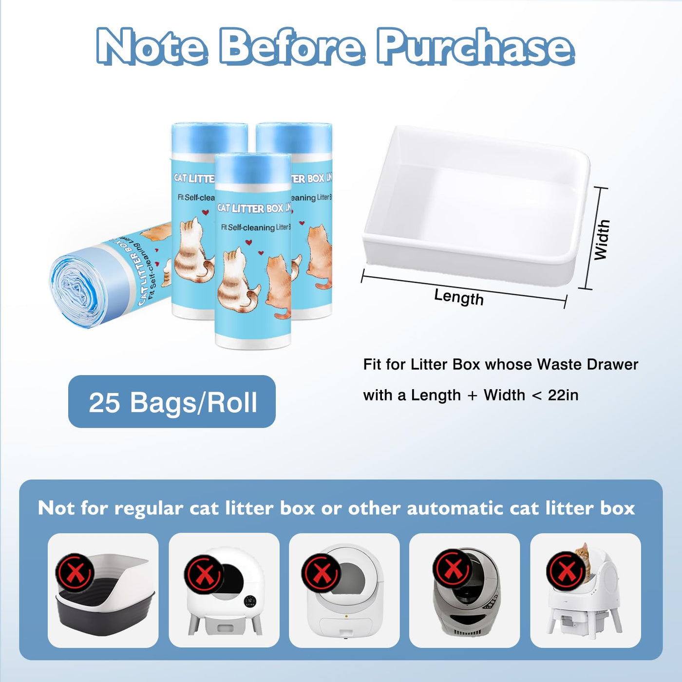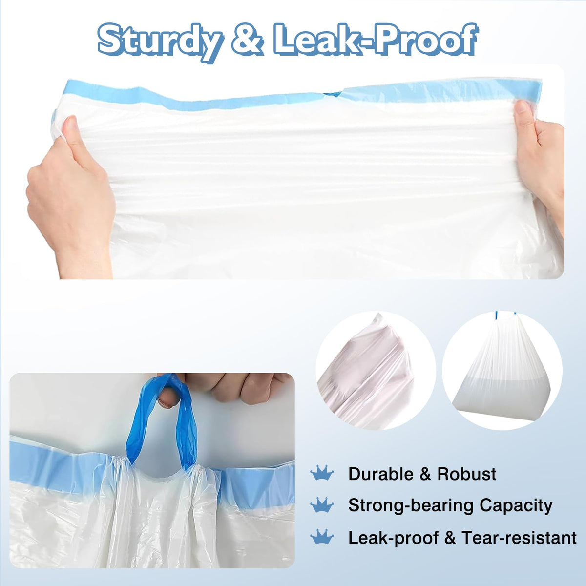 Our Thicken 1.2Mil Trash Bags Allows Them To Bear A Heavier Load Without The Risk Of Breaking Or Tearing, Ensuring A Mess-Free Experience. Comes With Durable Drawstring Handles For Effortless Disposal. Simply Pull The Drawstrings, Lift The Bag, Tie It Up And Throw It Away. Each Waste Bag Is Separated For Easily Taking Out. You Can Take A Single Bag From The Roll Without Tearing The Rest Bags. Our Kitty Litter Bags Is Compatible With Self-Cleaning Cat Litter Boxes, For Litter Drawers Up To L+W