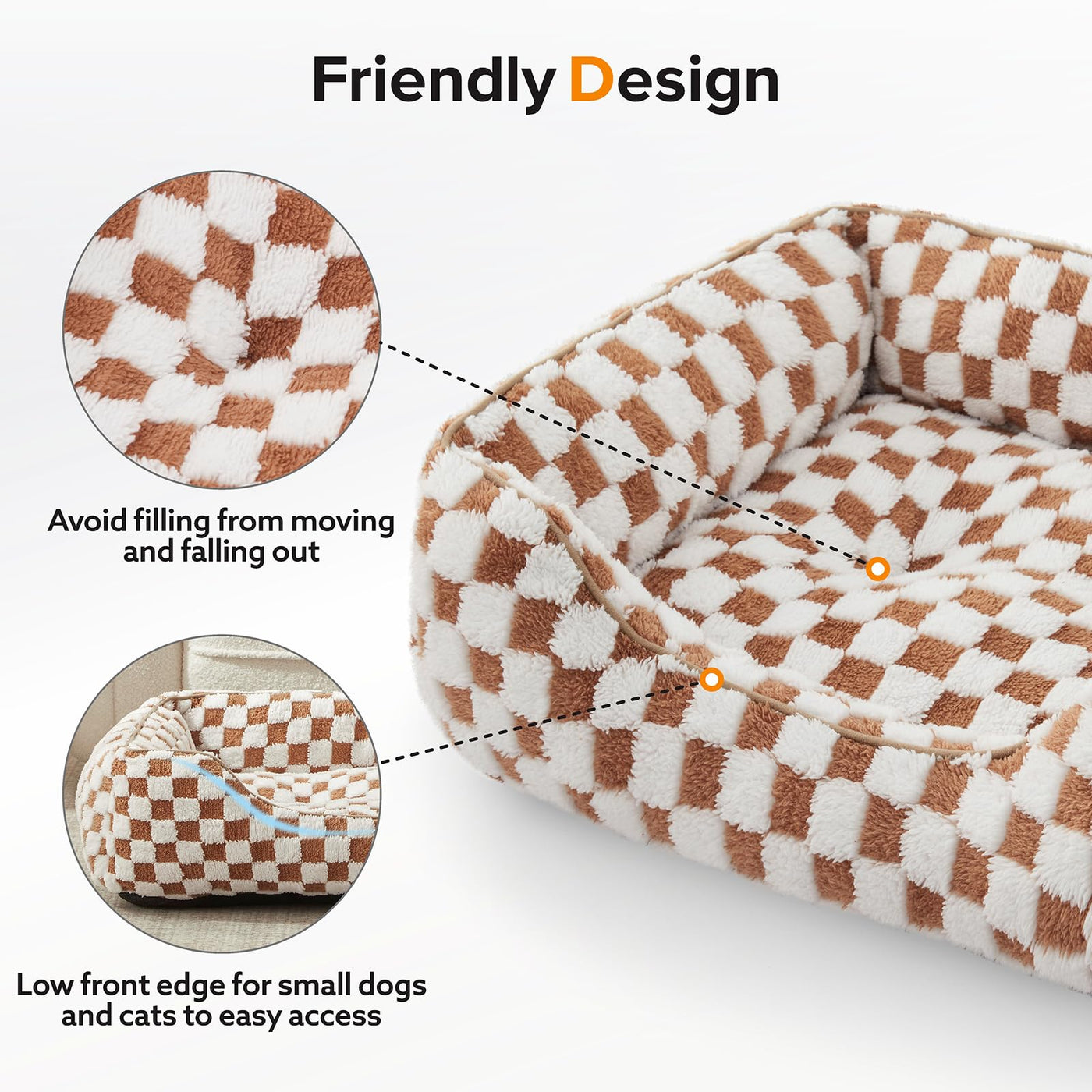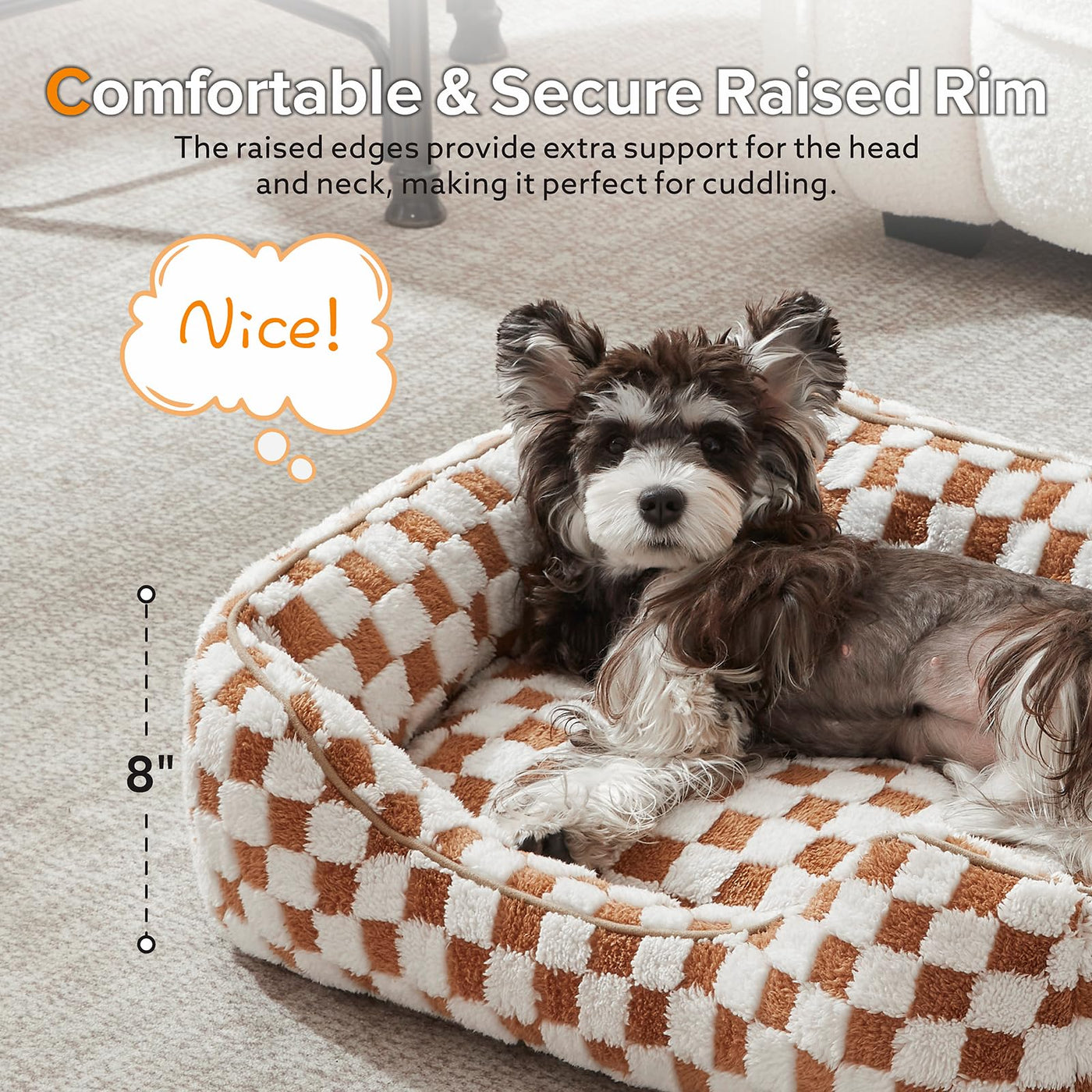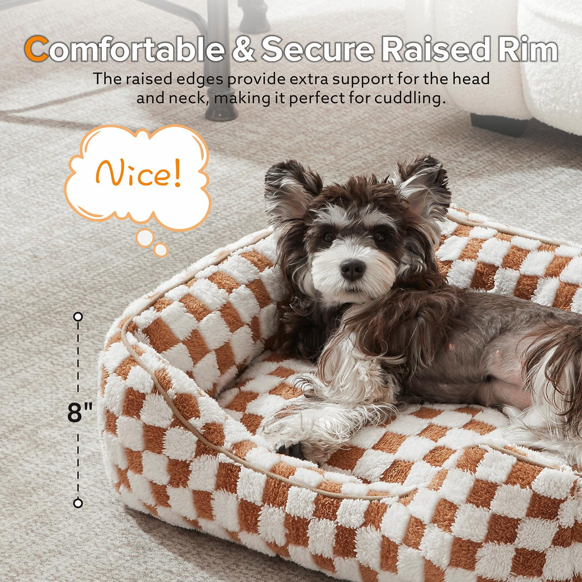 Joejoy Dog Bed For Large Medium Small Dogs - Rectangle Orthopedic Dog Sofa Bed, Cute Modern Puppy Bed With Jacquard Shaggy Plush
