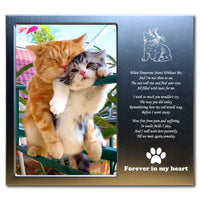 Honor the memory of your beloved feline companion with this touching Rainbow Bridge cat memorial picture frame. The elegant metal frame, measuring 4 x 6 inches, provides a beautiful way to display cherished photos of your departed pet. The frame features a heartfelt Rainbow Bridge theme, offering comfort during the grieving process. This thoughtful memorial gift serves as a lasting tribute to celebrate the special bond shared with your cat. Perfect as a sympathy gift for someone who has lost their furry friend, this frame helps keep precious memories close. The durable metal construction ensures this meaningful keepsake will stand the test of time, while its classic design complements any home decor. Display your favorite 4 x 6 inch photograph of your cat in this special frame that acknowledges the deep connection between pets and their families.