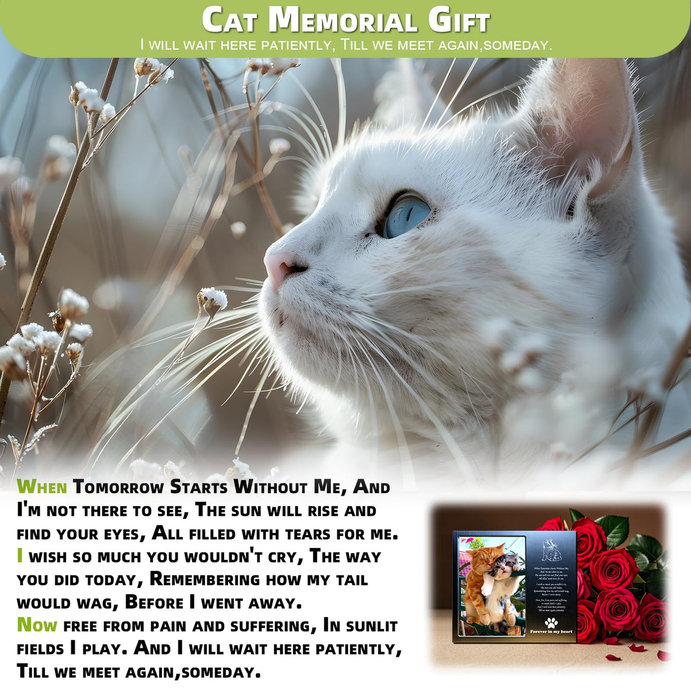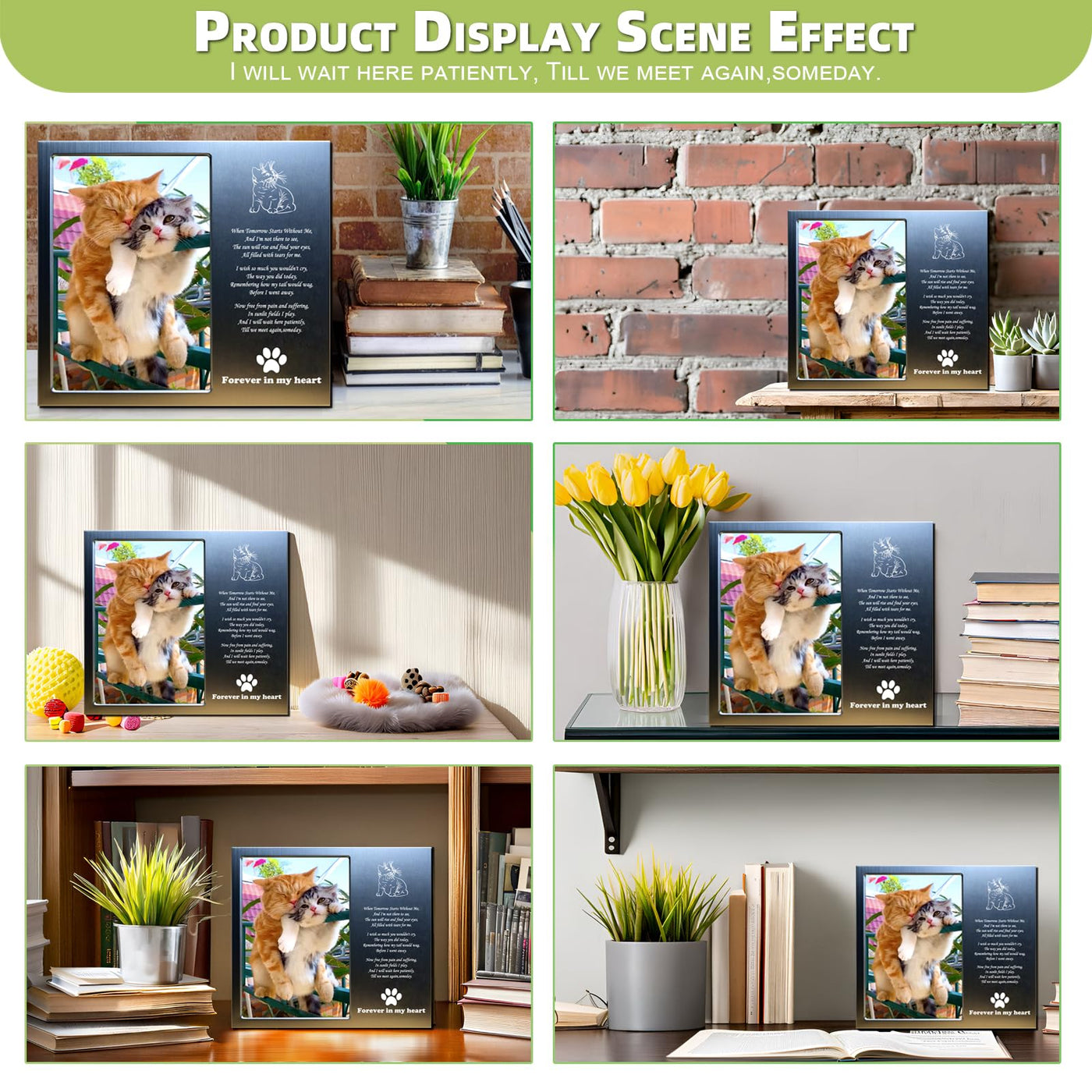 Q: Is this product suitable as a sympathy gift for someone who has lost a cat?A: Yes, this frame makes a thoughtful sympathy gift for anyone grieving the loss of a cat. Its unique memorial design and heartfelt Rainbow Bridge theme provide comfort and help commemorate the special bond shared with a beloved pet.