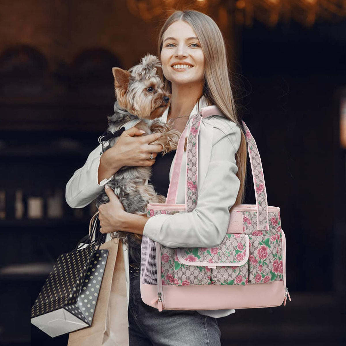 Johomviin Dog Carrier, Cat Carrier, Pet Carrier, Foldable Waterproof Premium Pu Leather Oxford Cloth Dog Purse, Portable Tote Bag Carrier For Small To Medium Cats And Small Dogs (Flower Pattern)
