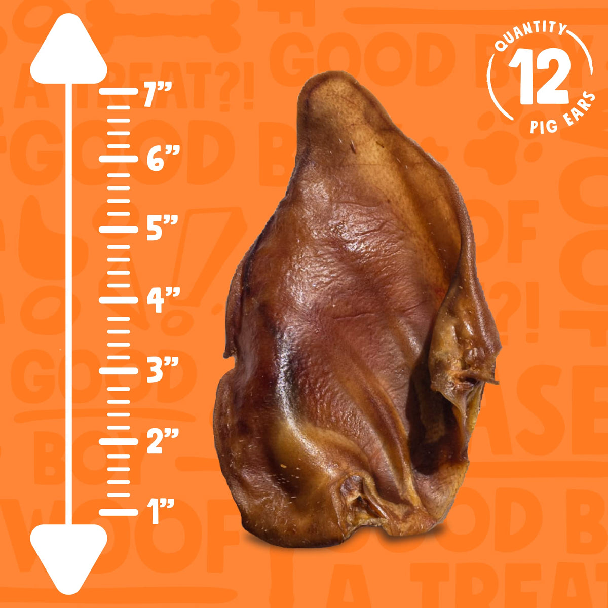 Simon Says Give your doggy the yummies chew! Give him pig ear for dogs! You know, your vet will tell you the same thing! Pig ears are an all natural healthy for the body, yummy to the palate kind of dog treat. JollyBarks pig ears are a single ingredient minimally processed top grade treat sourced from free range, grass fed pigs. No antibiotics, no hormones- just natural as nature made it! Our pig ears are carefully and professionally processed to eliminate odors and bacteria while producing a lip smacking treat your dog will love. Vitamin and mineral rich, plus a great source of chondroitin to provide extra support to your pups hips and joints. Promotes healthy teeth and gums through the chewing action. 100% digestible, 100% safe, 100% delicious! About JollyBarks: Here at JollyBarks, we keep things simple. We make awesome treats; awesome treats make happy dogs. Our wide selection of single-ingredient, wholesome and unbelievably tasty treats are the most straightforward way to make your dogs palate happy and enhance its overall wellbeing. With JollyBarks treats, you cant go wrong; its the right way to go... until theres not one crumb left ;) Size: Approx. 3 Inches long Quantity: 12 whole pig ears Guaranteed Analysis: Crude Protein (min) 21.69% Crude Fat (min) 16.83% Crude Fiber (max) 0.22% Moisture (max) 11.44% Crude Protein (min): 21.69% Moisture (max): 11.44% Crude Fiber (max): 0.22% Crude Fat (max): 16.83% Country of Origin: Brazil