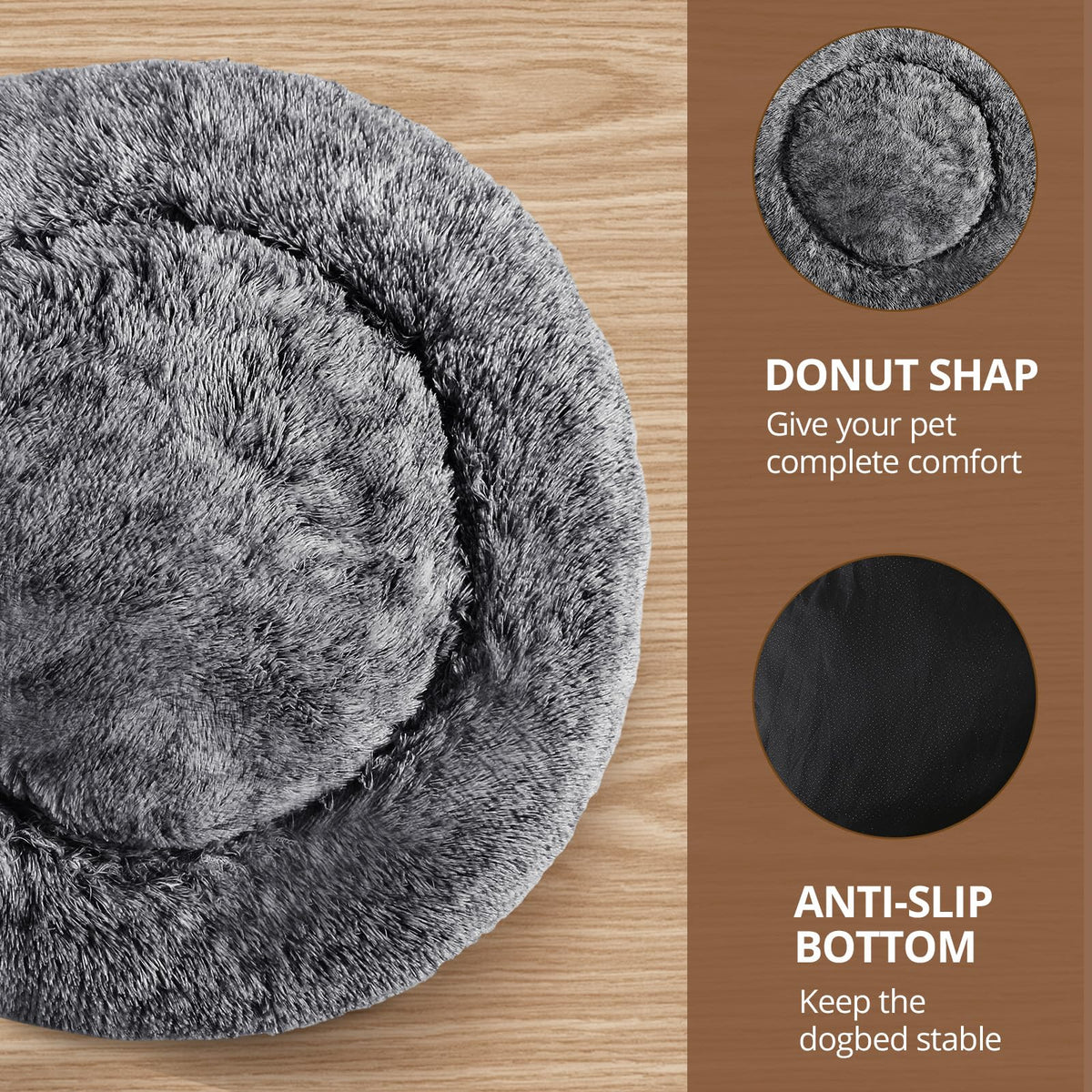 Jollyvogue Calming Dog & Cat Bed For Small Dogs, Anti-Anxiety Donut Cuddler Cozy Soft Round Bed With Anti-Slip Bottom, Fluffy Fa