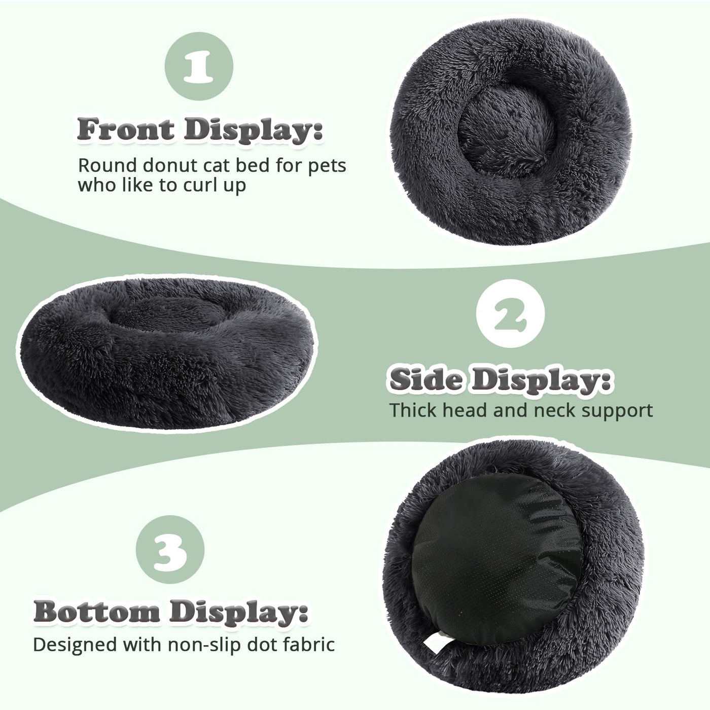 SOOTHING MECHANISM: The donut dog bed soothes animals by providing plush comfort a solid border a headrest and a sense of protection. While giving head and neck support to help your kitten or puppy calm down faster