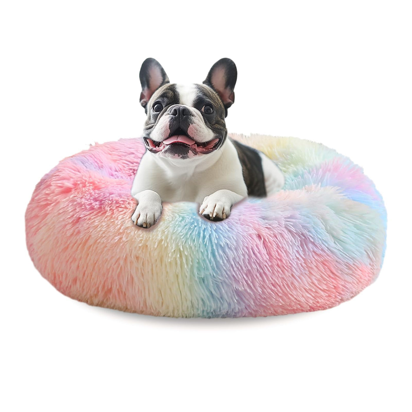 Jollyvogue Medium Calming Dog Bed, Anti-Anxiety Donut Cuddler Cat Bed With Anti-Slip Bottom, Fluffy Faux Fur Machine Washable Pe